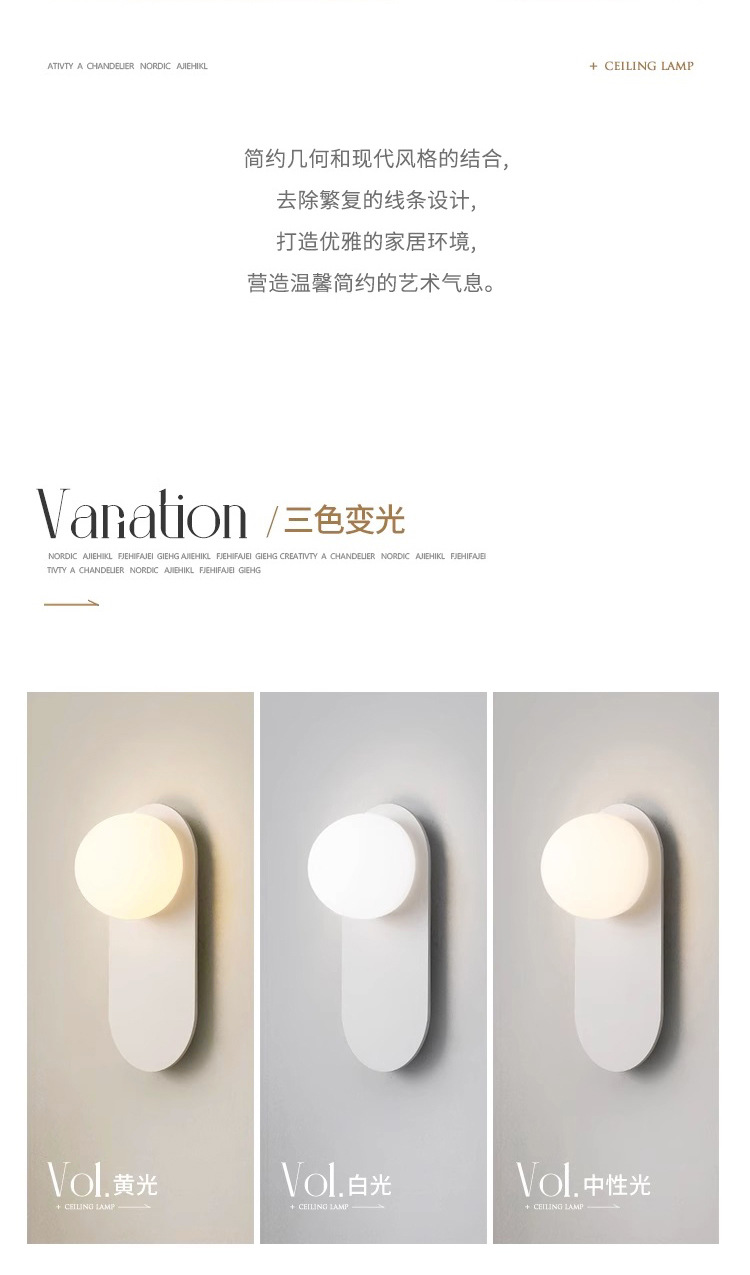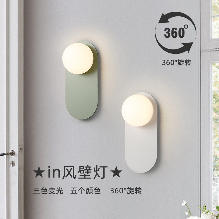 새로운 침대 옆 벽 램프는 현대 간단한 창조적 인 침실 램프 3 색 북유럽 인터넷 유명한 높은 수준의 벽 램프를 주도