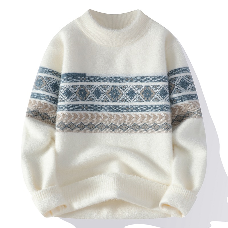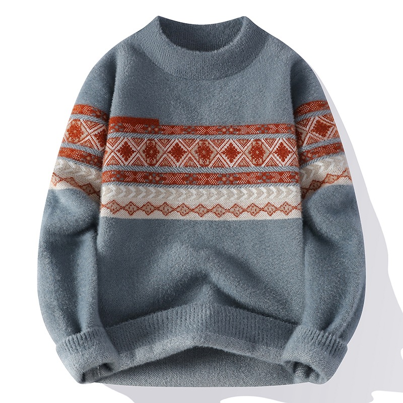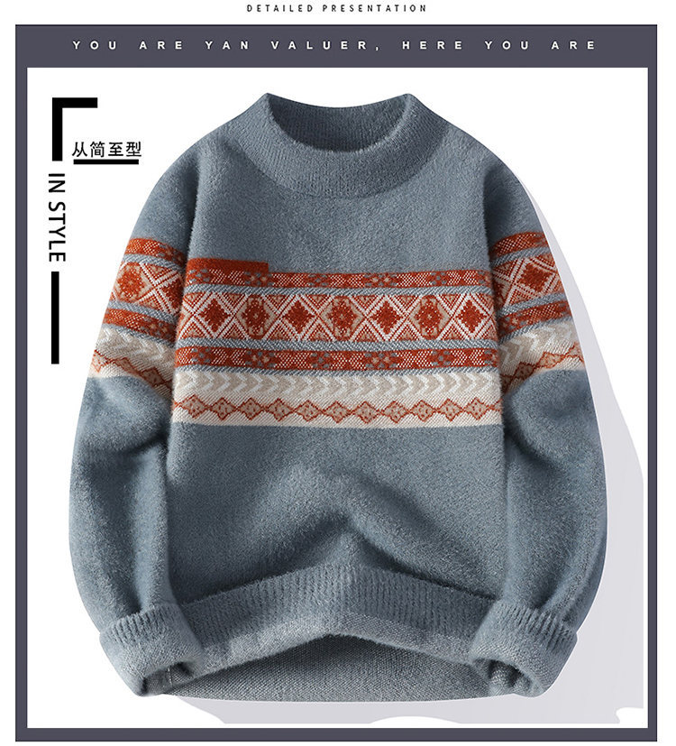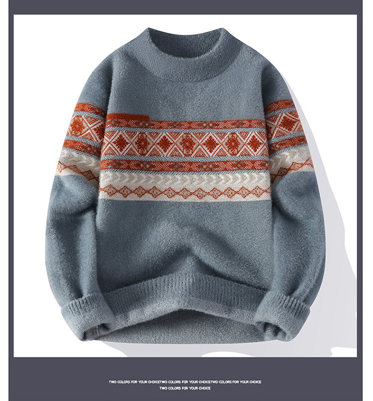 국경 간 대외 무역 세대 AliExpress 남성 니트 2024 새로운 세미 하이 칼라 크리스탈 밍크 스웨터 남성용 스웨터
