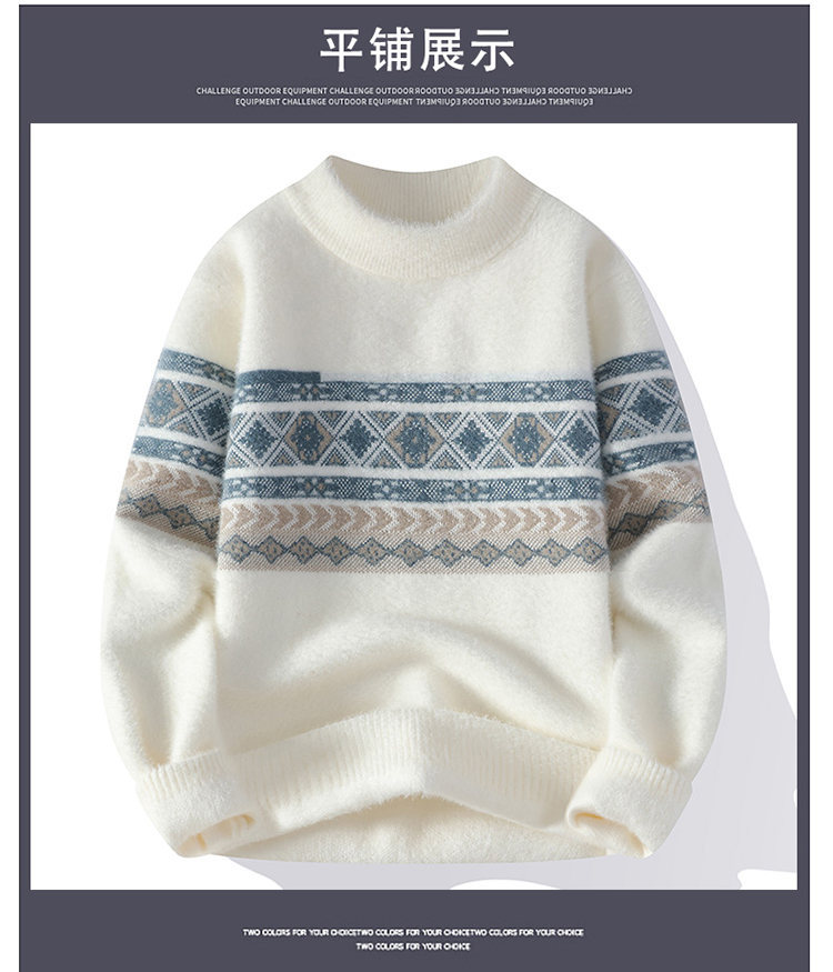 국경 간 대외 무역 세대 AliExpress 남성 니트 2024 새로운 세미 하이 칼라 크리스탈 밍크 스웨터 남성용 스웨터스토어 가기