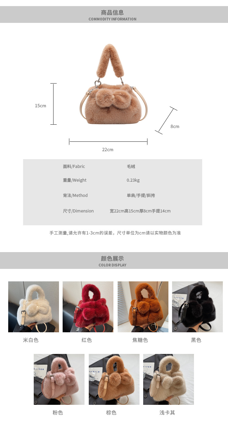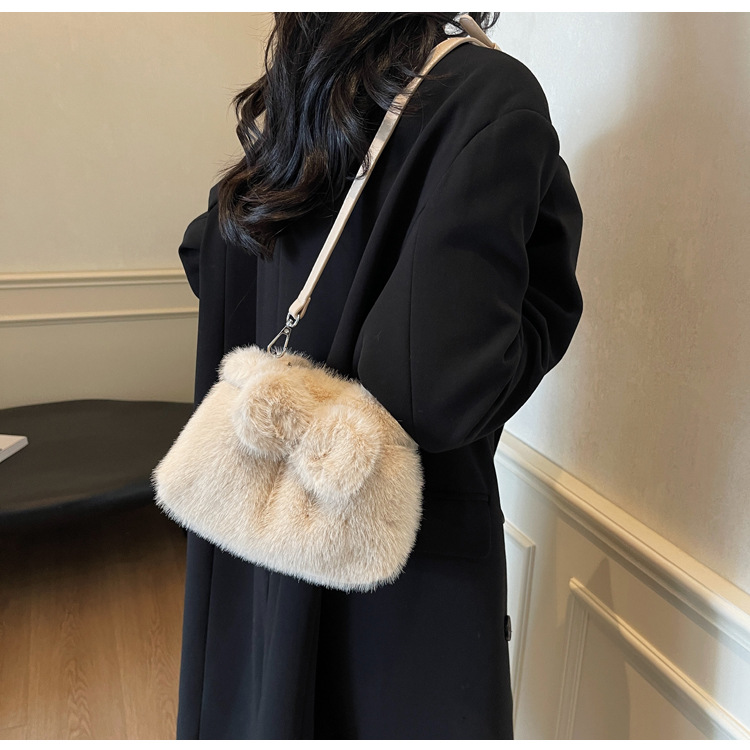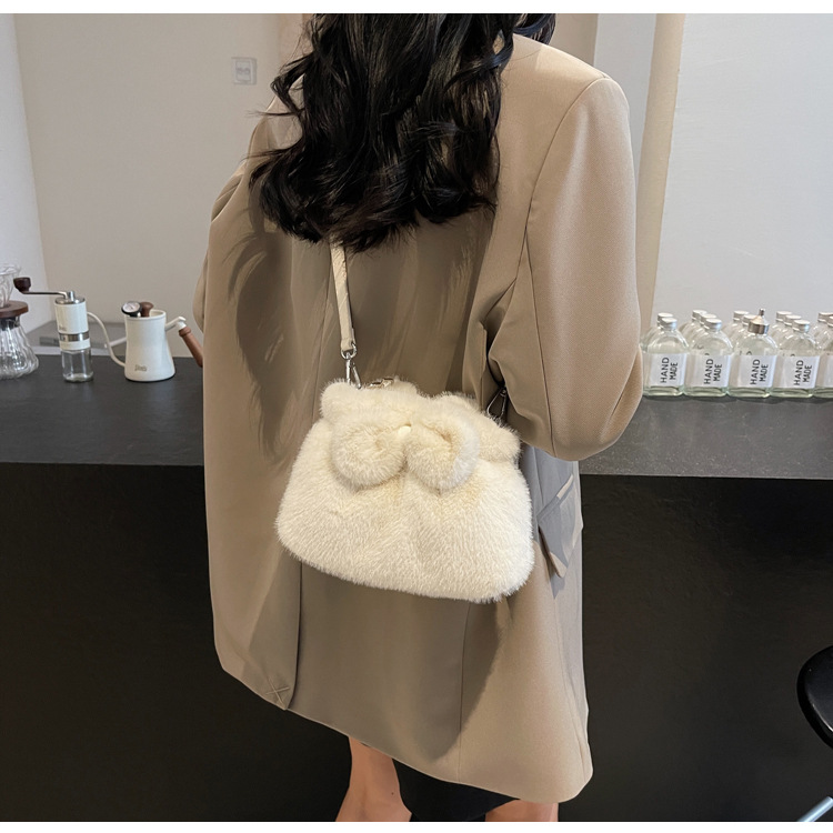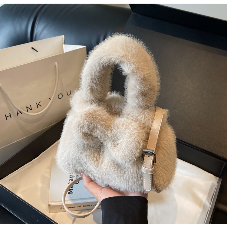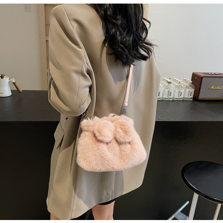 여성을 위한 새로운 귀여운 봉제 가방, 맞춤형 크로스보더 토끼 핸드백, 모피 버킷 백, 틈새 숄더 크로스바디 백스토어 가기