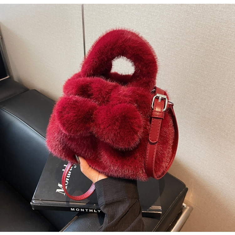 여성을 위한 새로운 귀여운 봉제 가방, 맞춤형 크로스보더 토끼 핸드백, 모피 버킷 백, 틈새 숄더 크로스바디 백