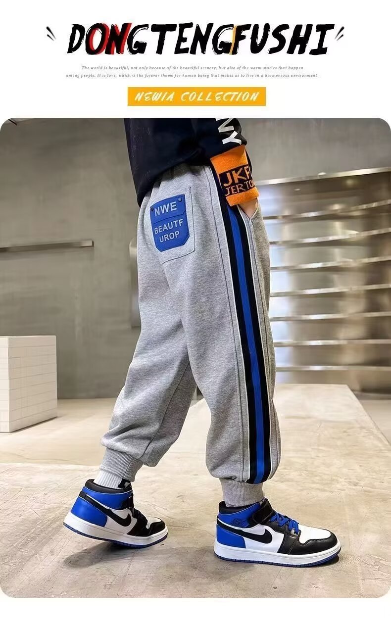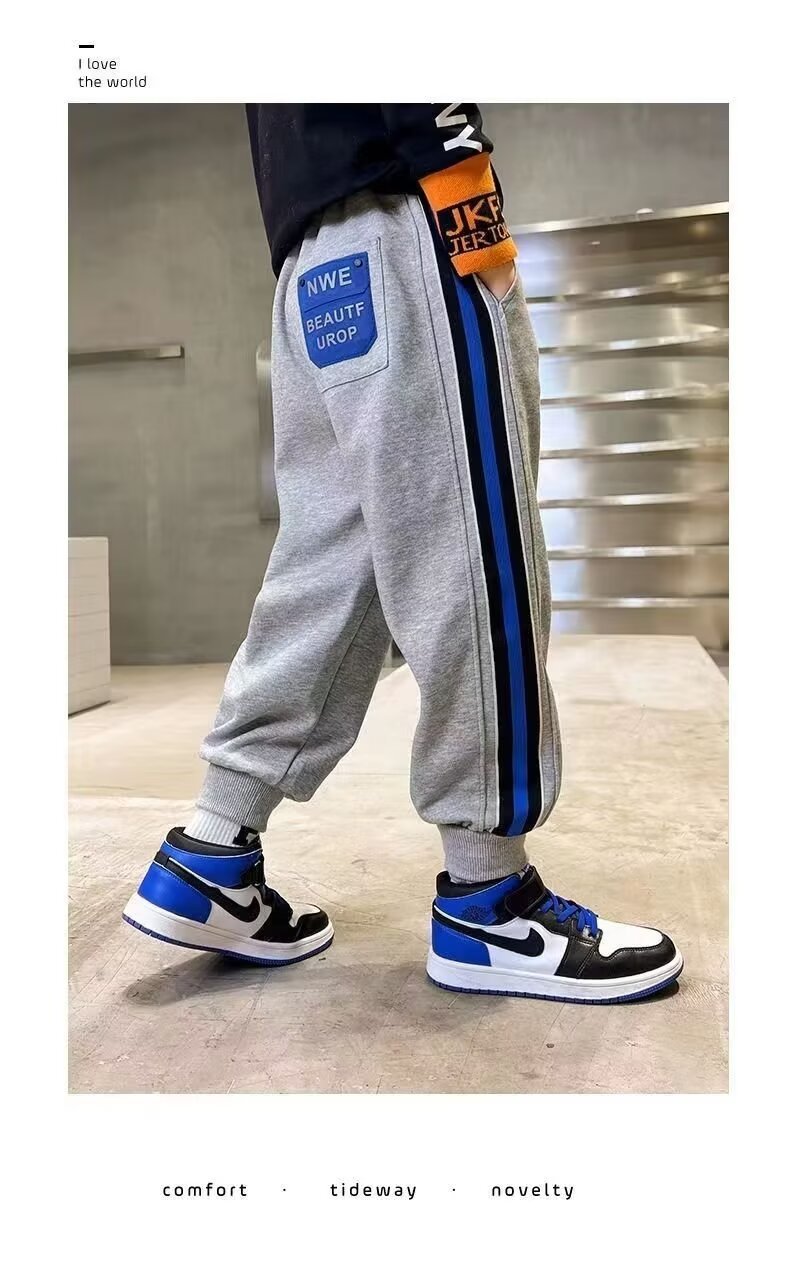 소년 바지 봄과 가을 2024 새로운 서양식 어린이 느슨한 캐주얼 바지 큰 어린이 봄 착용 스포츠 바지 유행스토어 가기