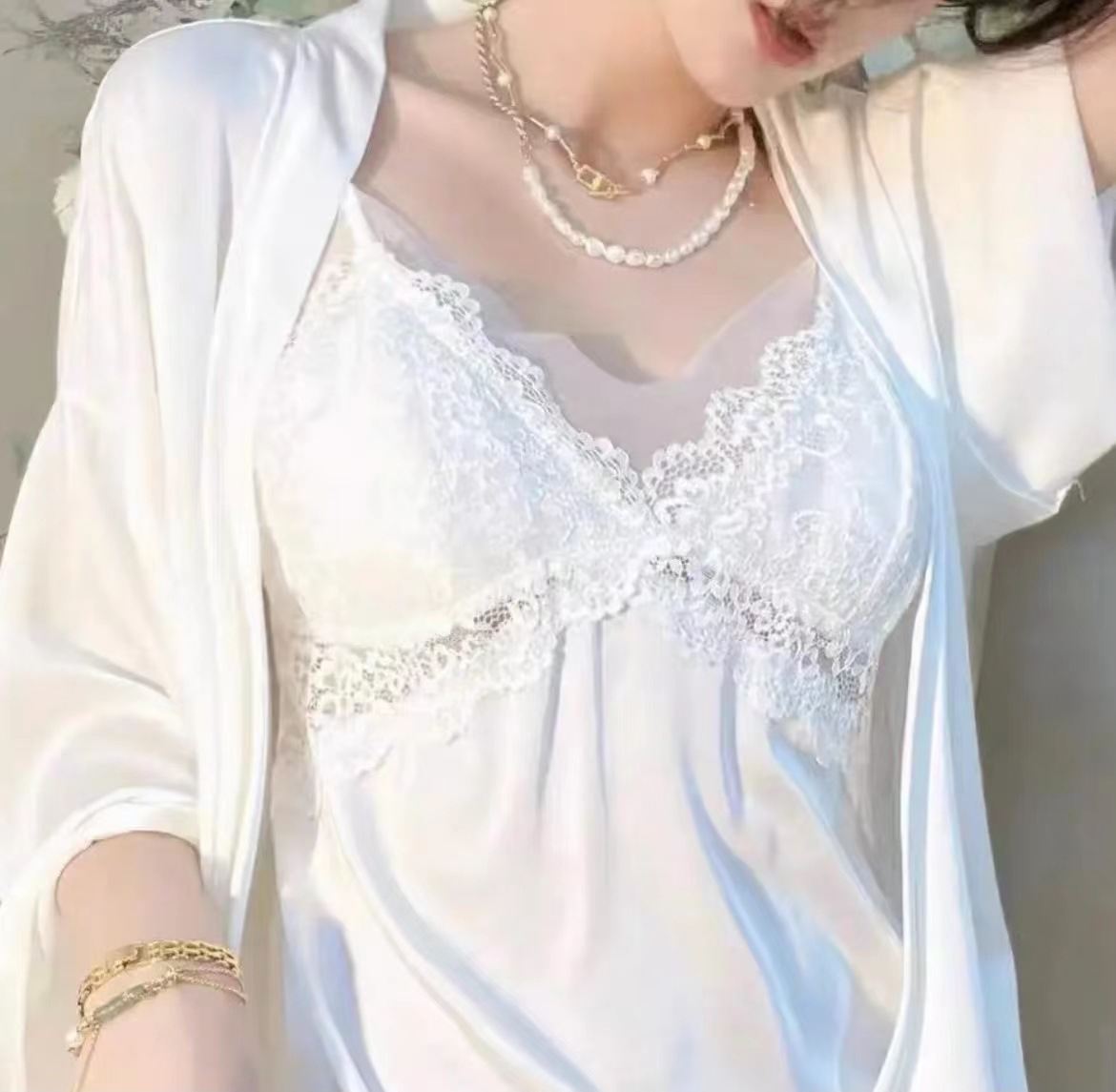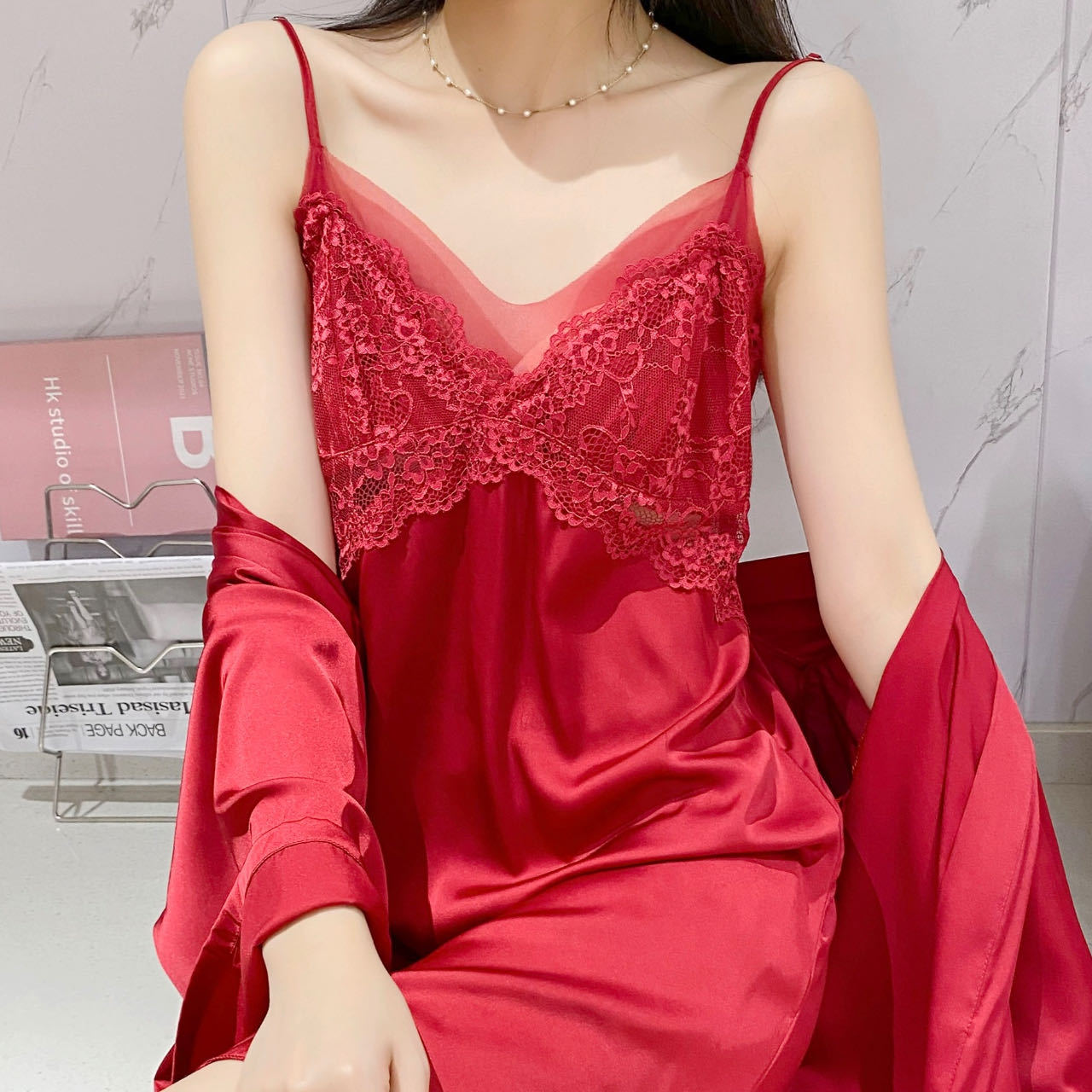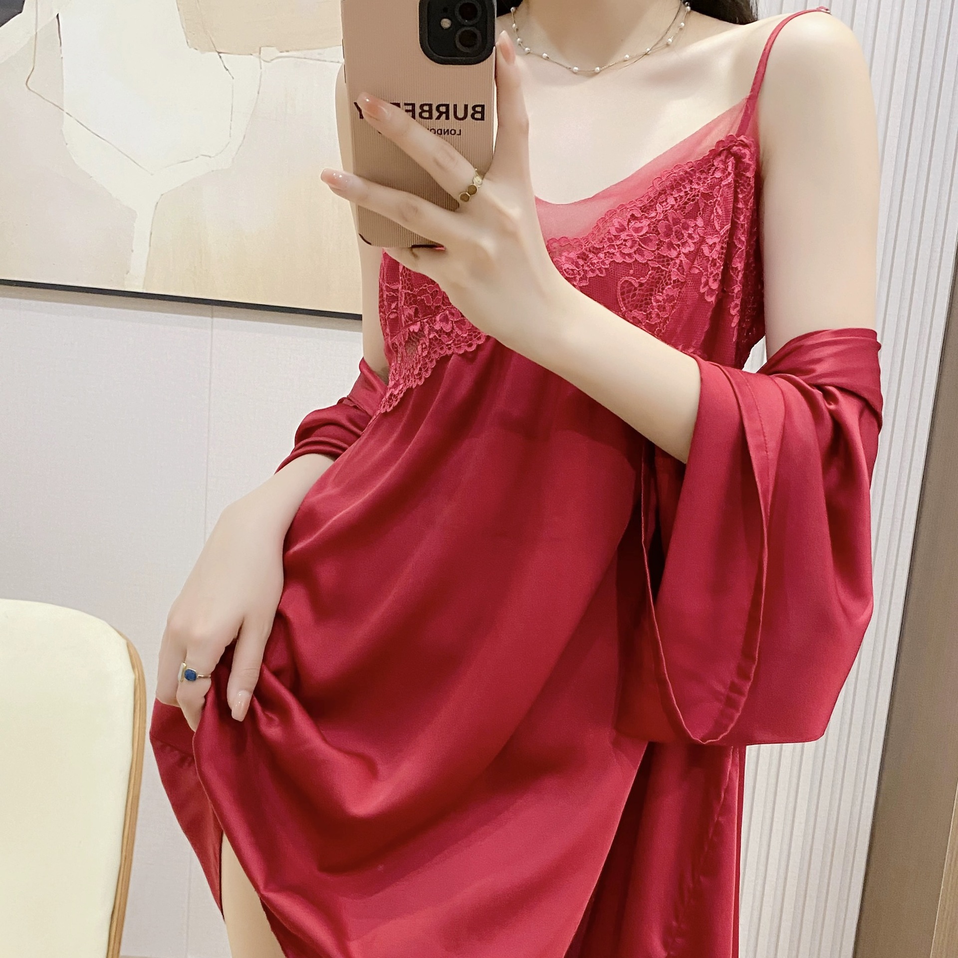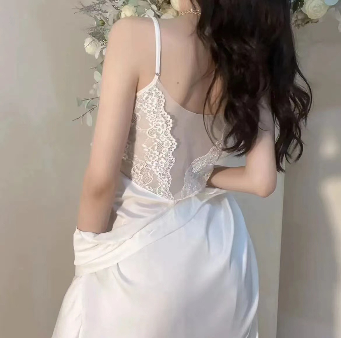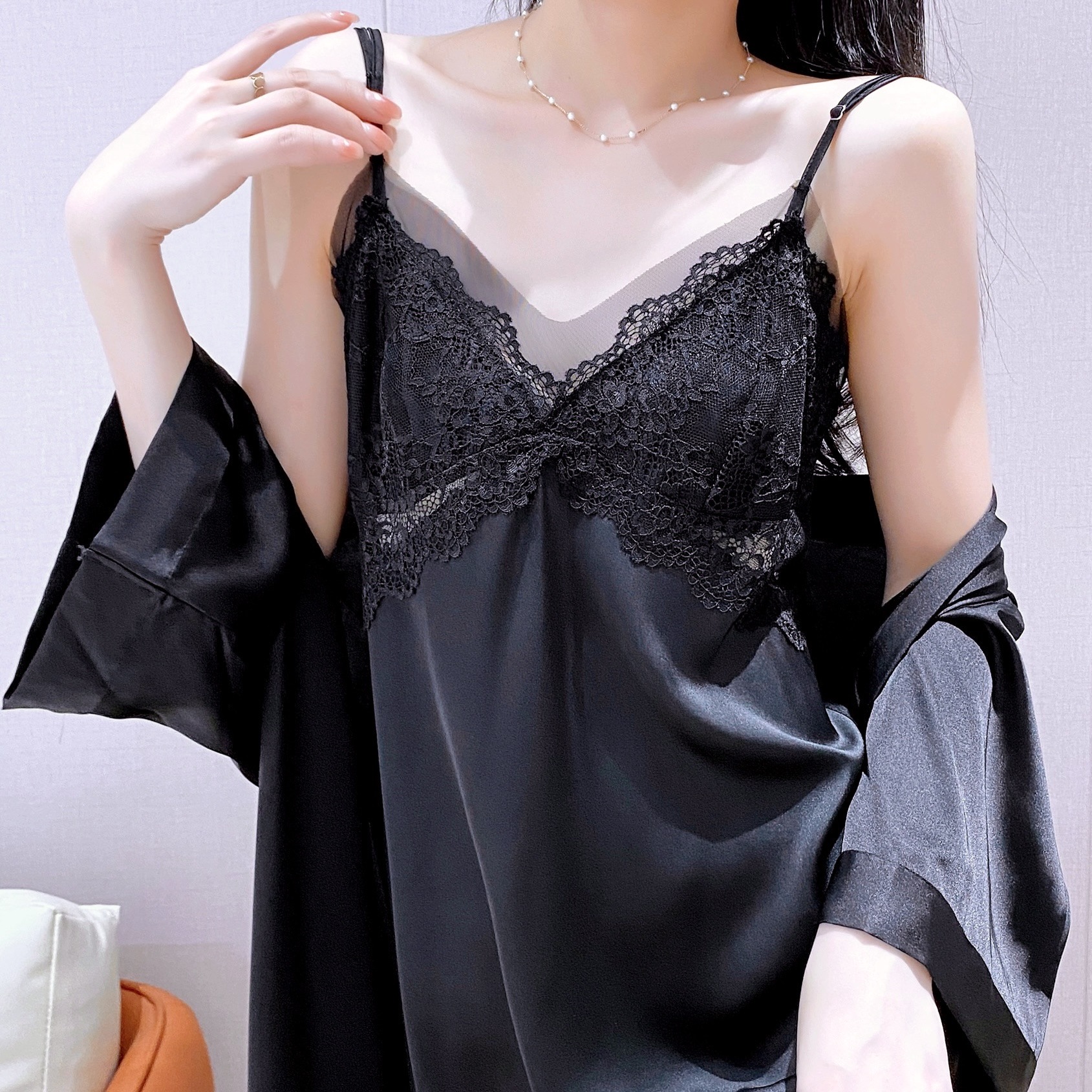 [흔들리는] 봄 · 여름 새 잠옷 레이스 메시 아이스 실크 슬링 아름다운 다시 순수한 바람 벨트 가슴 패드 섹시한 잠옷