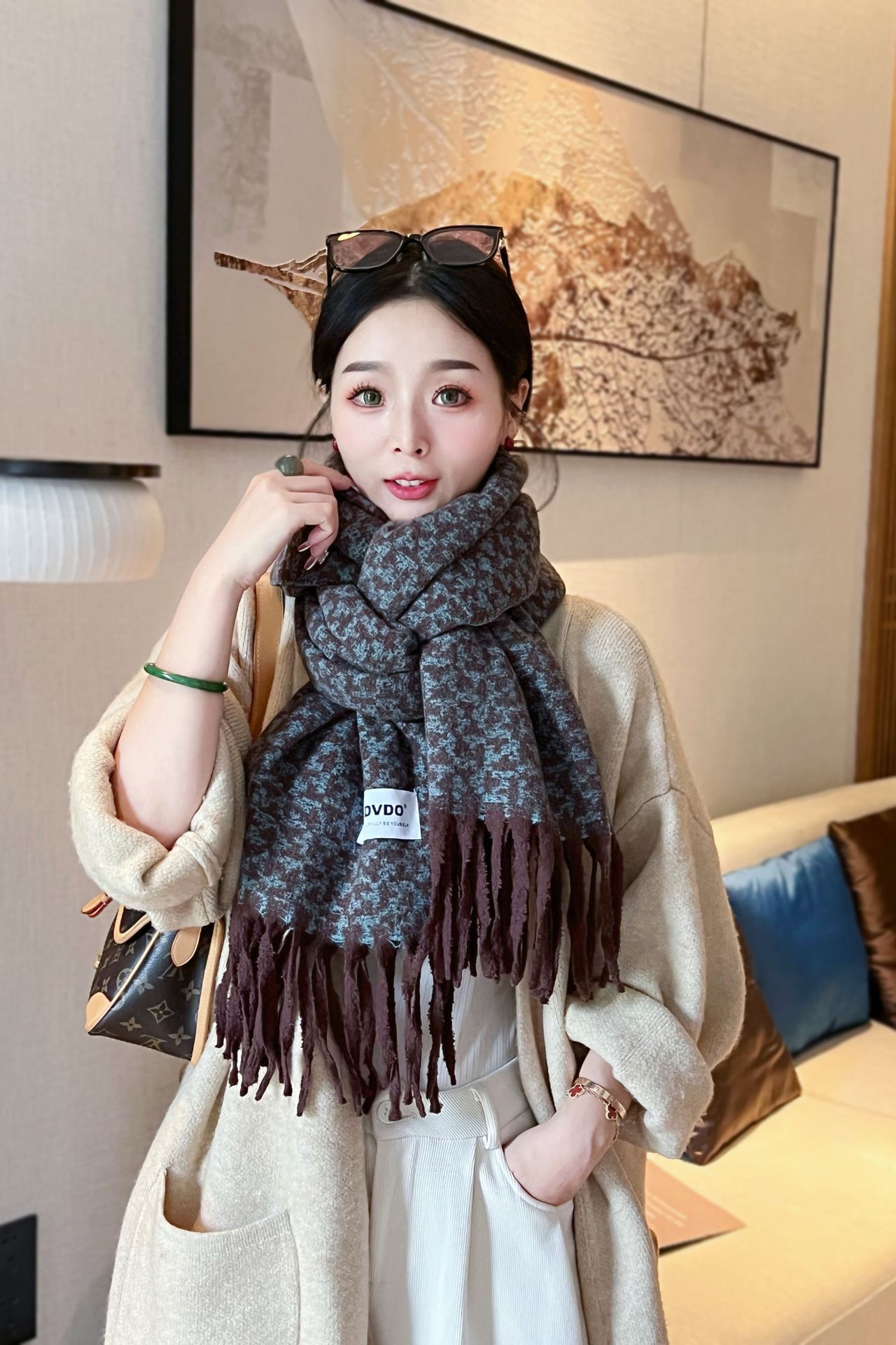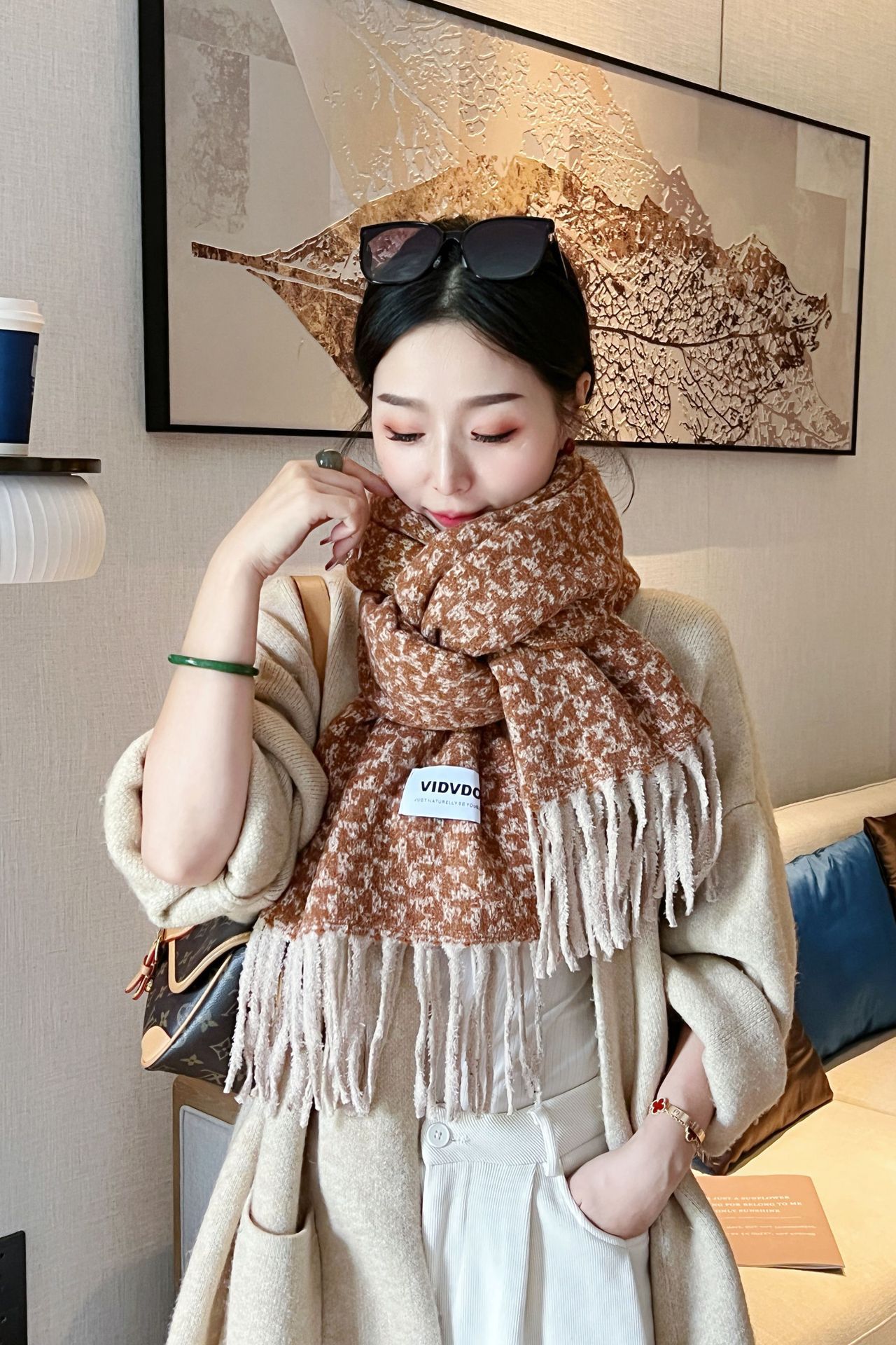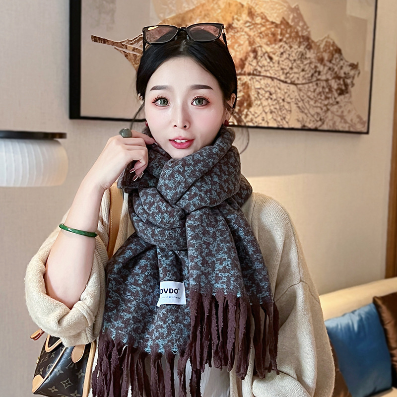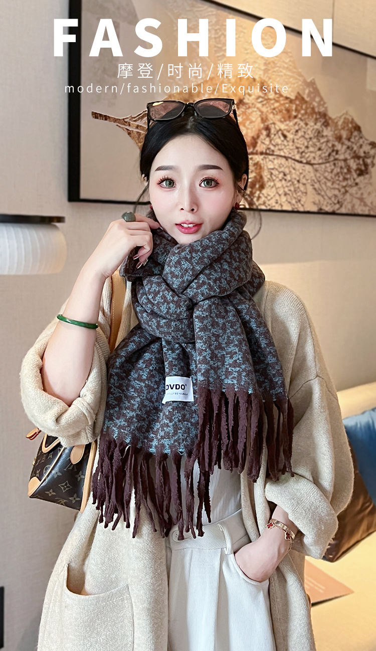 TikTok 같은 스타일 2024 가을과 겨울 새로운 스타일 밀크 벨벳 스카프 높은 수준의 여성 올매치 목도리 격자 모양의 두꺼운 스카프