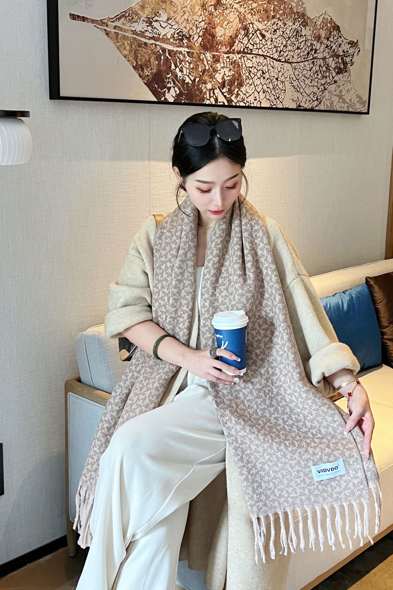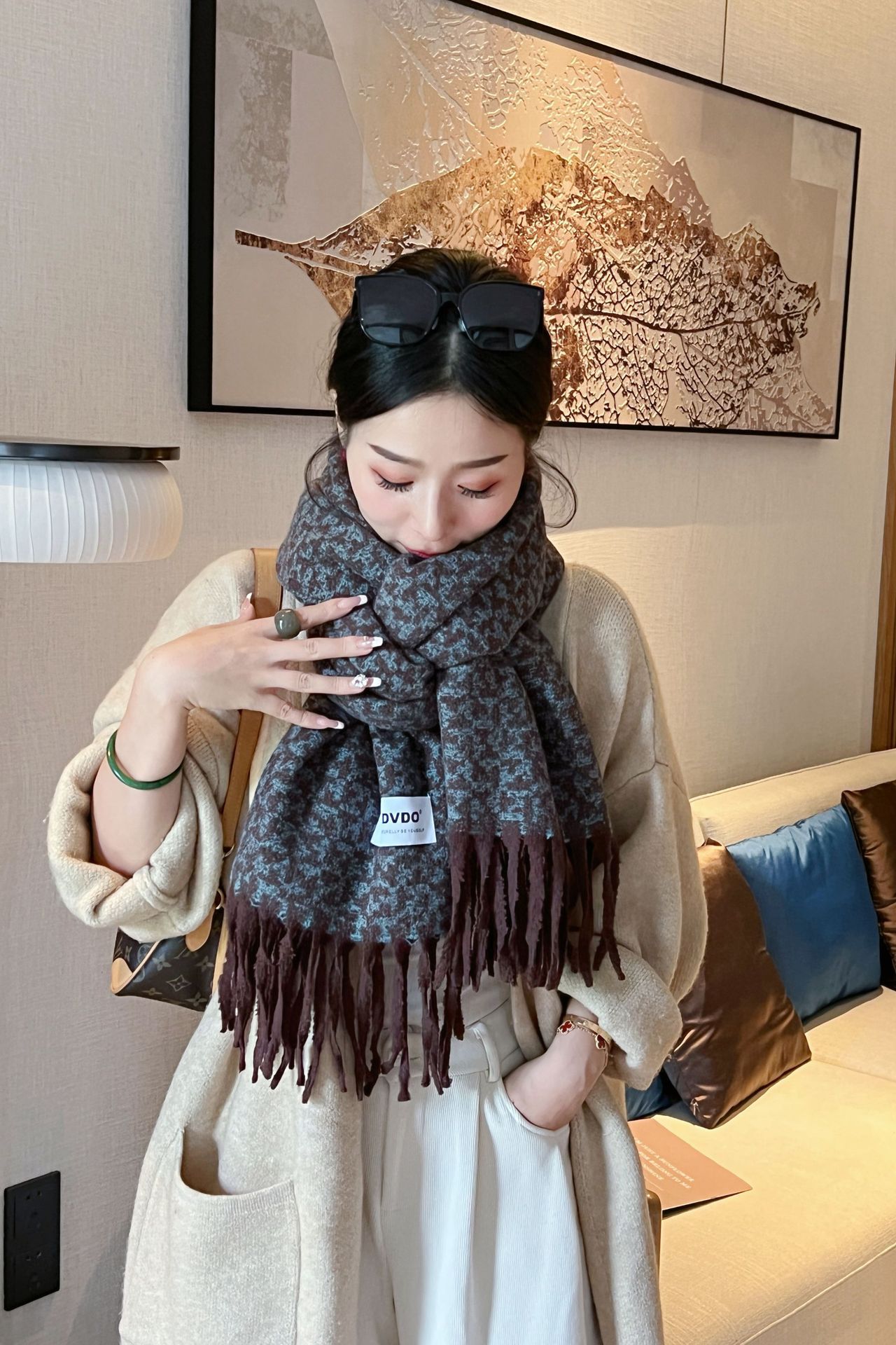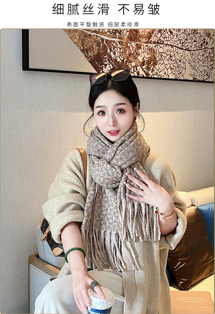 TikTok 같은 스타일 2024 가을과 겨울 새로운 스타일 밀크 벨벳 스카프 높은 수준의 여성 올매치 목도리 격자 모양의 두꺼운 스카프