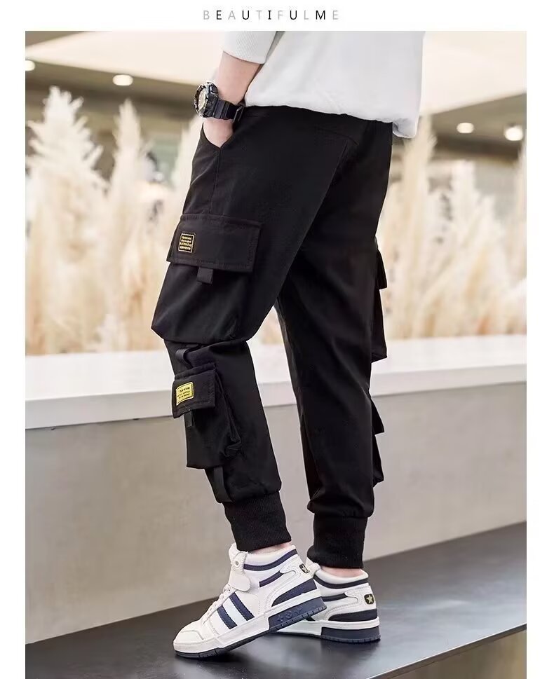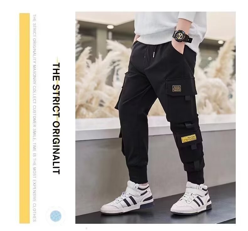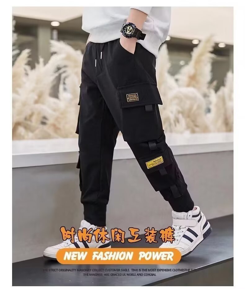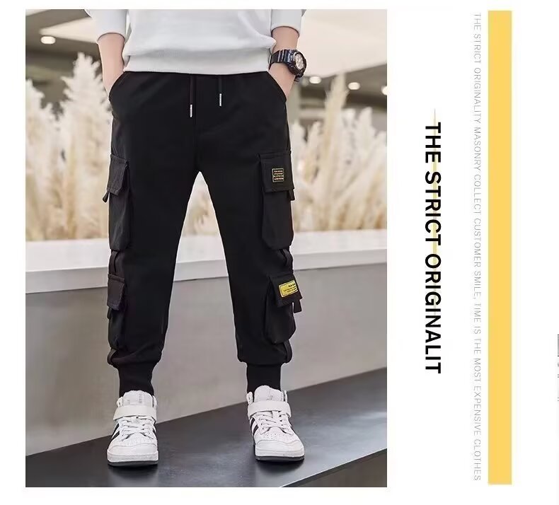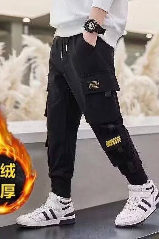 남자 큰 어린이 봄과 가을 세트 스포츠 바지 2024 새로운 어린이 이른 가을 느슨한 양털-Lit 바지 트렌디스토어 가기