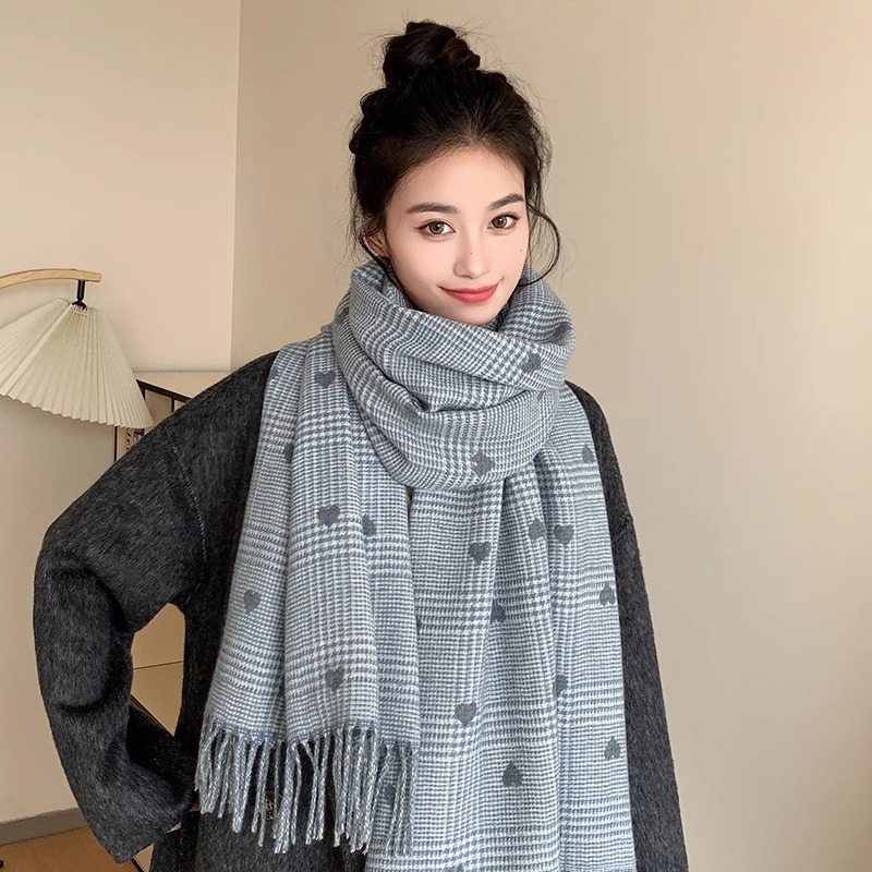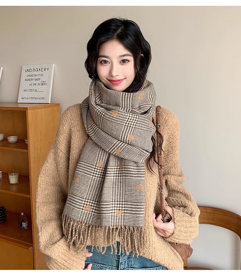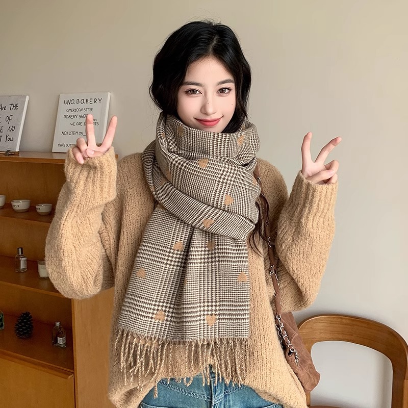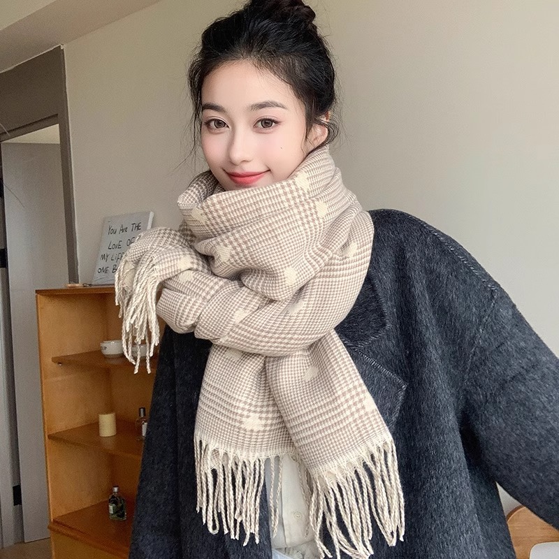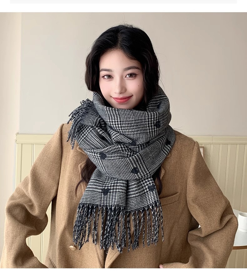 Love Houndstooth 모방 캐시미어 술 스카프 여자 클래식 올매치 외출 두꺼운 목도리 가을과 겨울 따뜻한 스카프