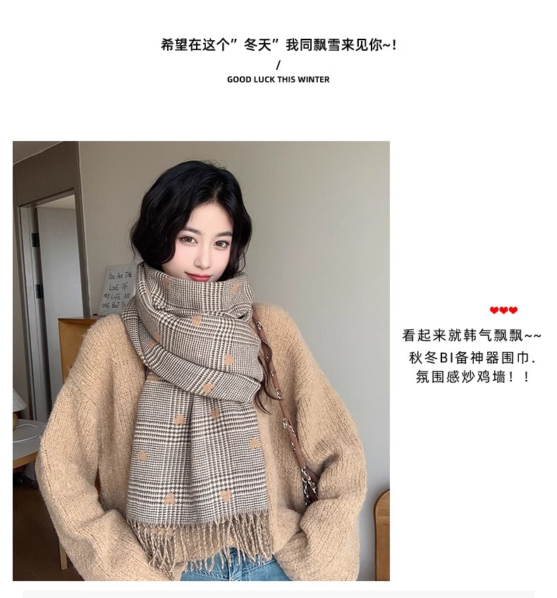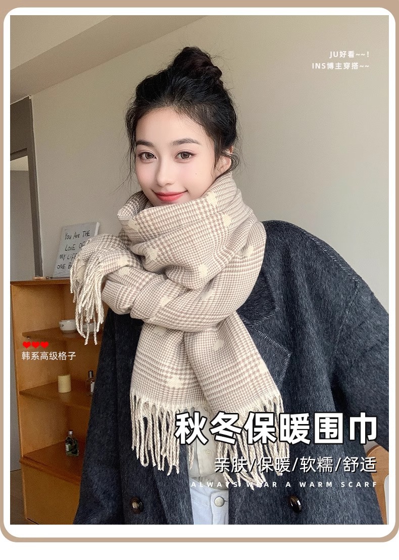 Love Houndstooth 모방 캐시미어 술 스카프 여자 클래식 올매치 외출 두꺼운 목도리 가을과 겨울 따뜻한 스카프스토어 가기