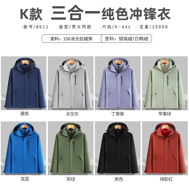 충전 옷 맞춤 인쇄 로고 작업 옷 3 대 1 이동식 재킷 자수 가을 및 겨울 맞춤 다운
