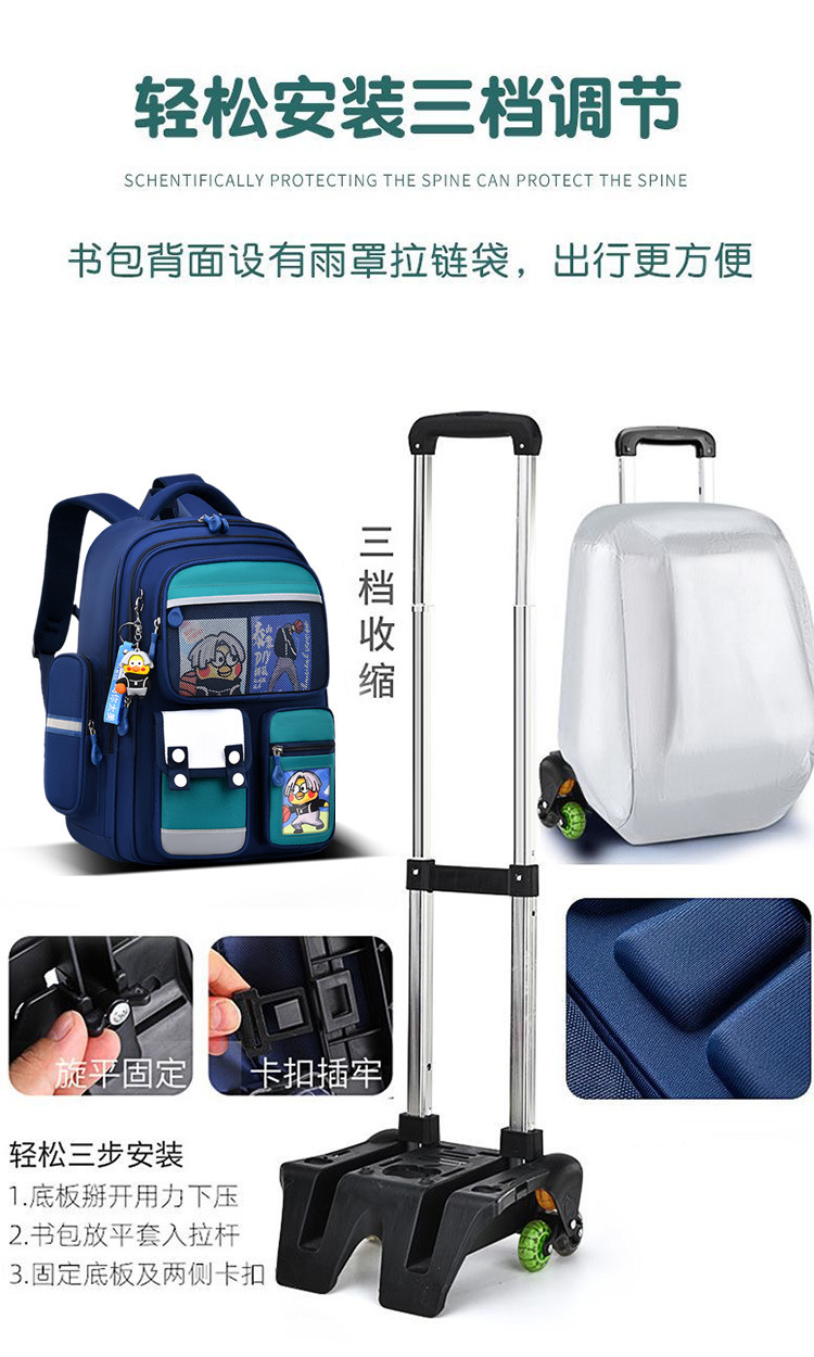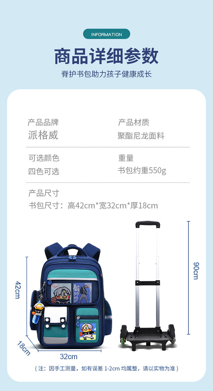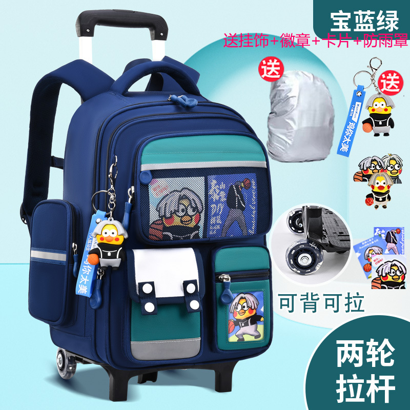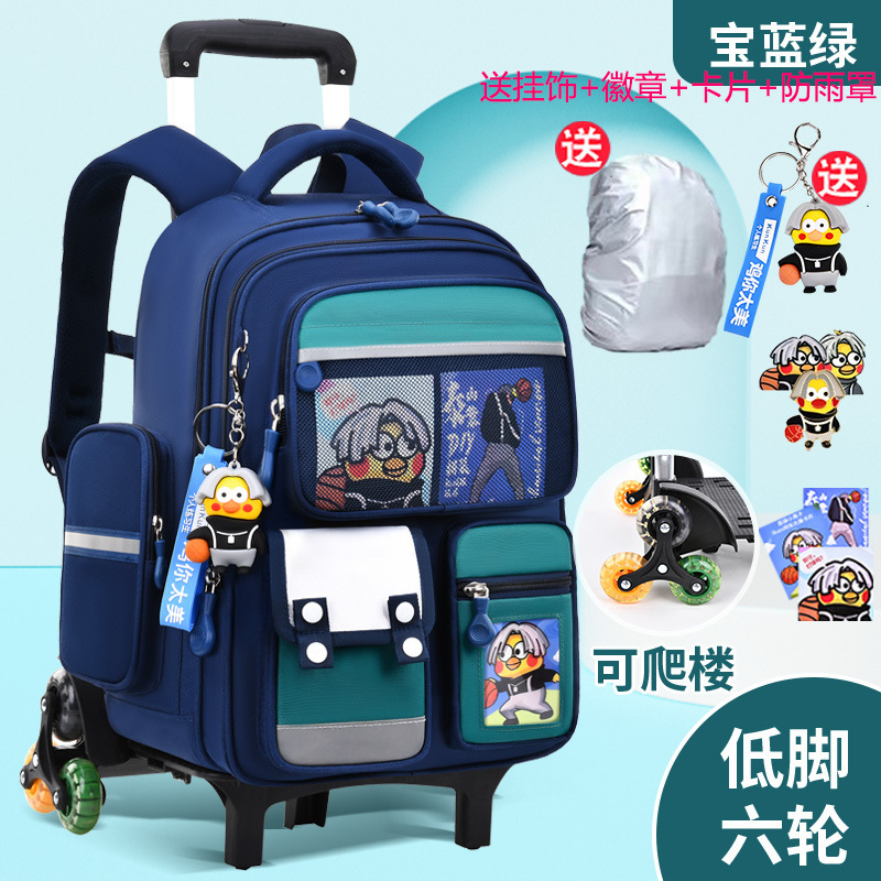 E8Y New Trolley Schoolbag 어린이 초등학교 소녀 1, 2, 3-6 학년 경량 등반 계단 소년 더블스토어 가기