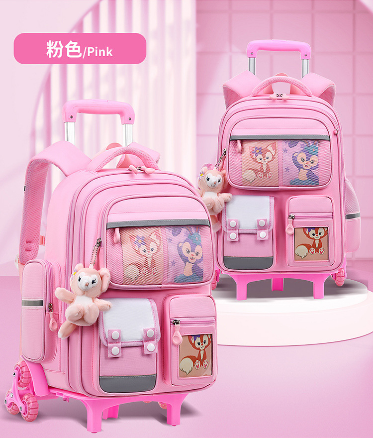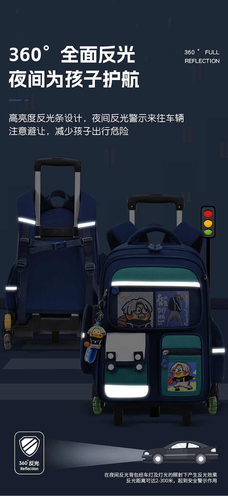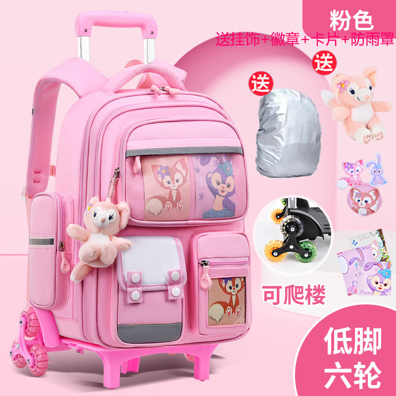 E8Y New Trolley Schoolbag 어린이 초등학교 소녀 1, 2, 3-6 학년 경량 등반 계단 소년 더블