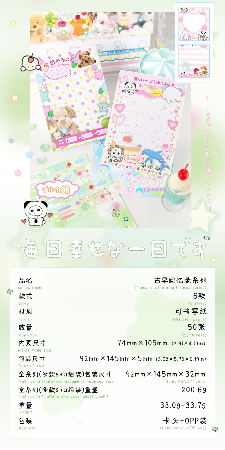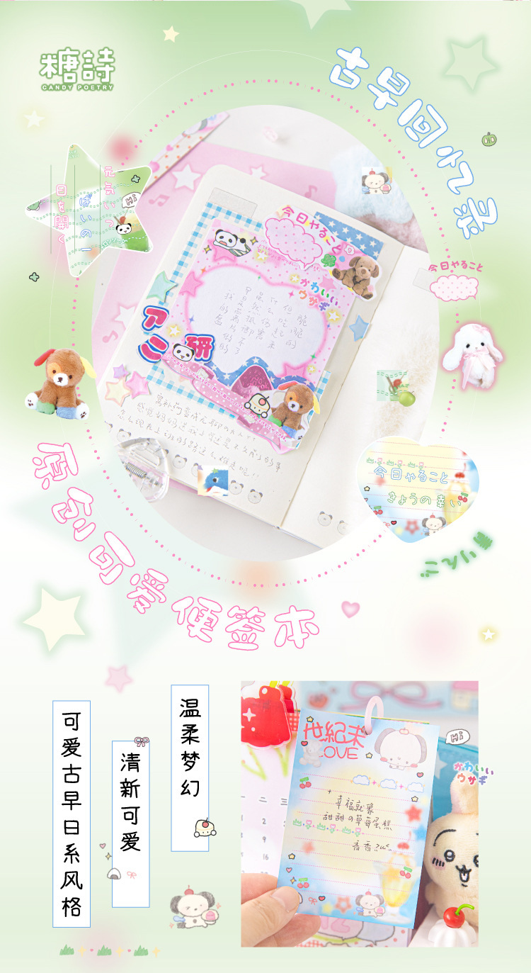 설탕시 스티커 메모 고대 회고록 시리즈 귀여운 일본 일러스트 핸드북 백업 메시지 노트