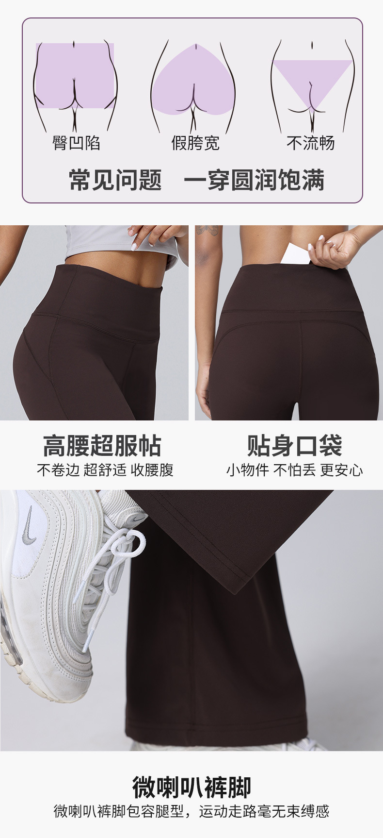 라이크라 알몸 스포츠 플래 팬츠 여성의 높은 허리 엉덩이 리프팅 탄성 피트니스 넓은 다리 바지 캐주얼 슬리밍 요가 바지