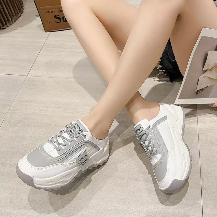 패셔너블한 플랫폼 밑창 슈즈 2025 가을 신상 레트로 두꺼운 밑창 배색 키높이 캐주얼 스포츠 여성용 토캡 슬리퍼스토어 가기