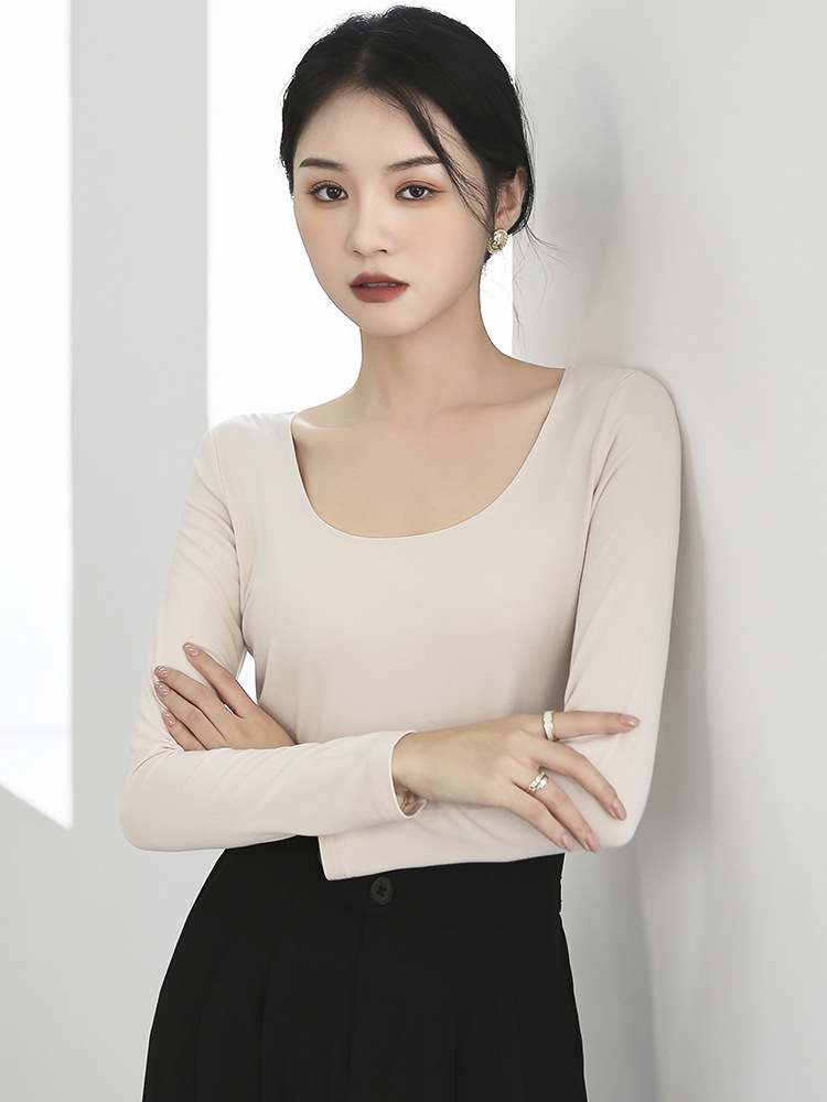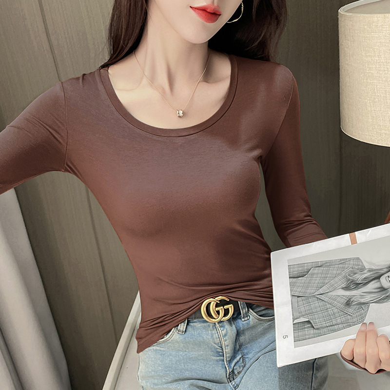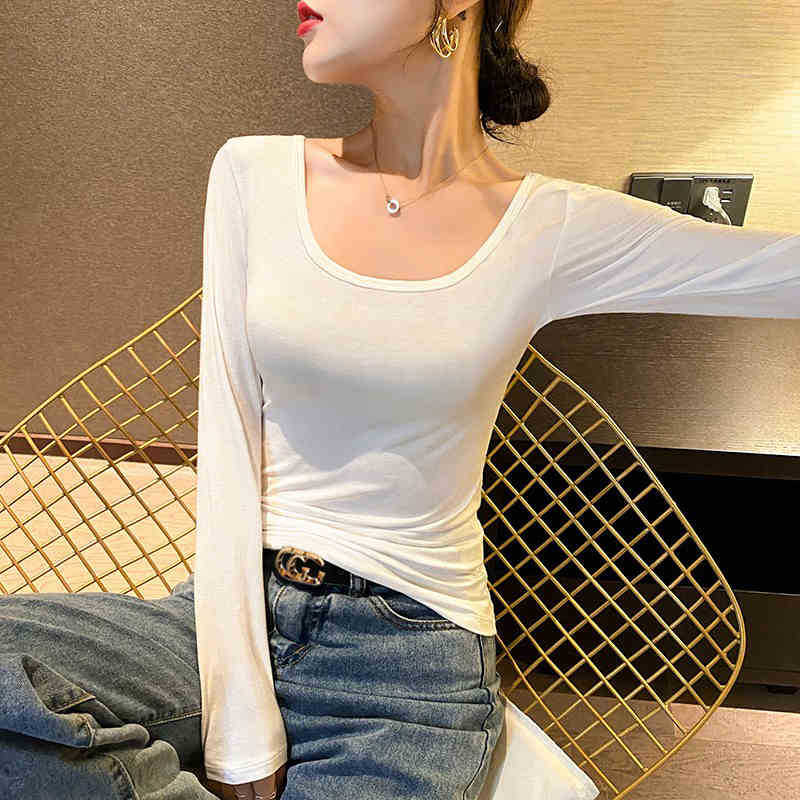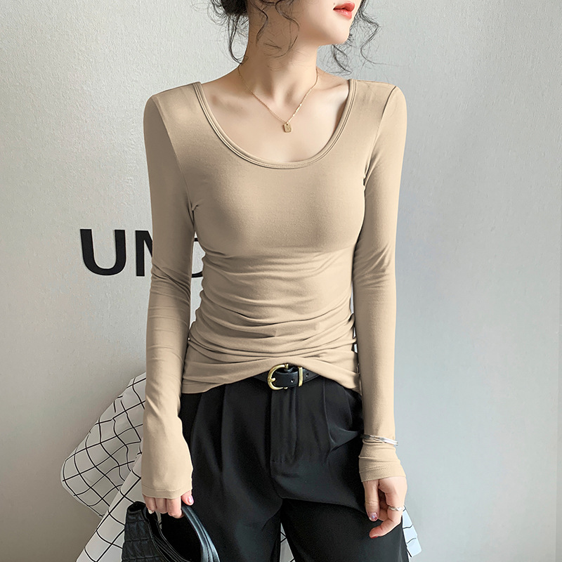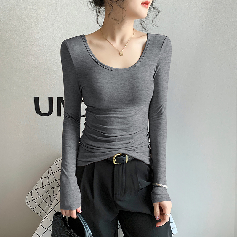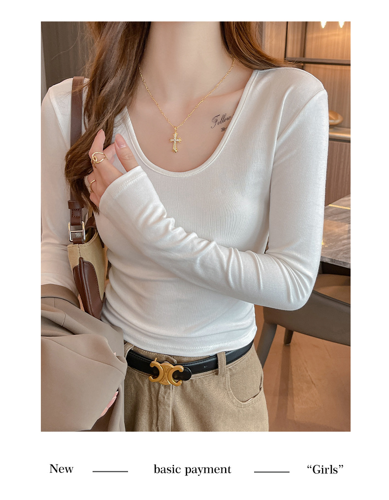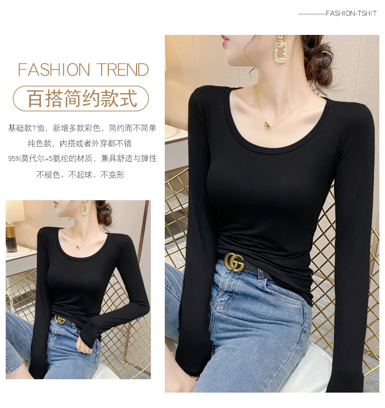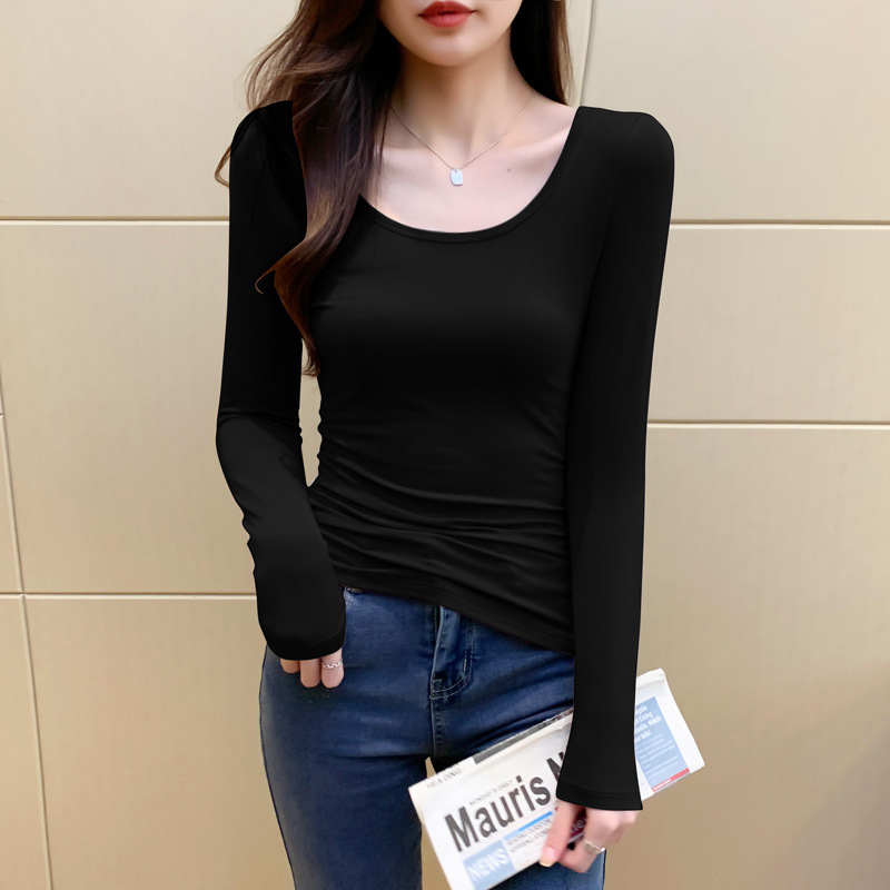 라운드 넥 블랙베이스 셔츠 여성용 스레드 봄 가을과 겨울 세트 내부 슬림 핏 서양식 긴팔 티셔츠 니트 탑