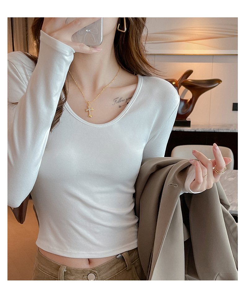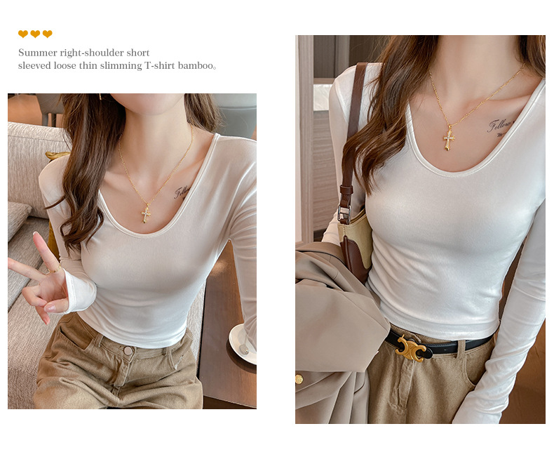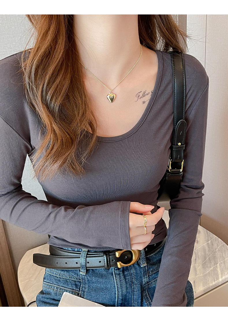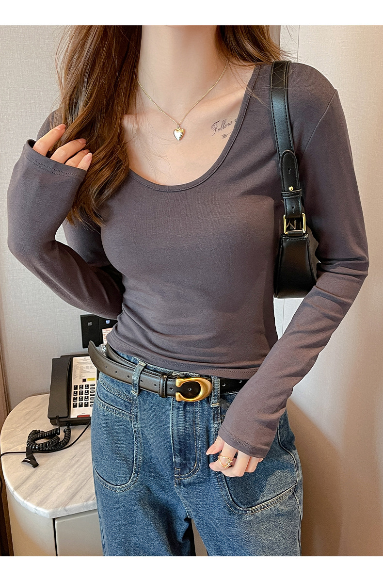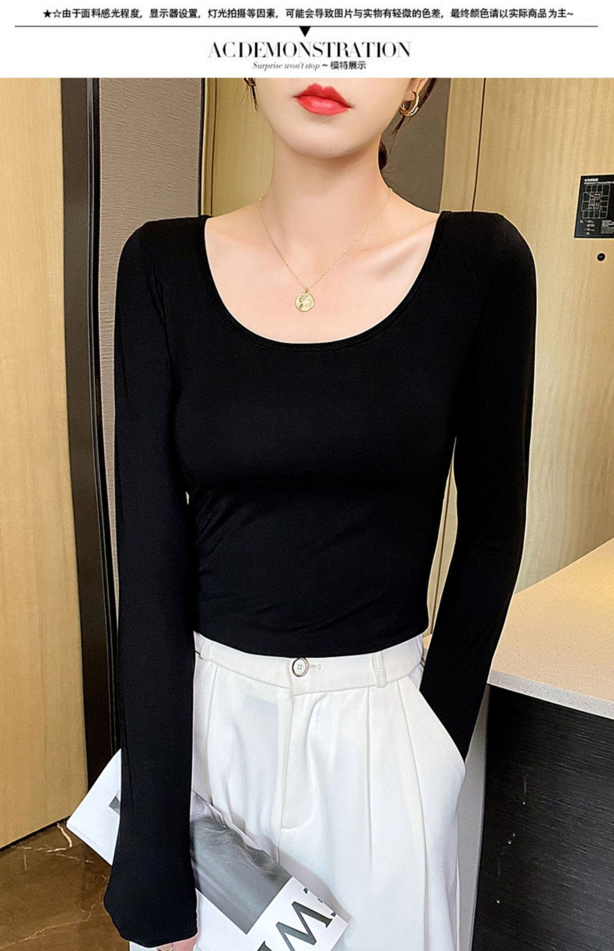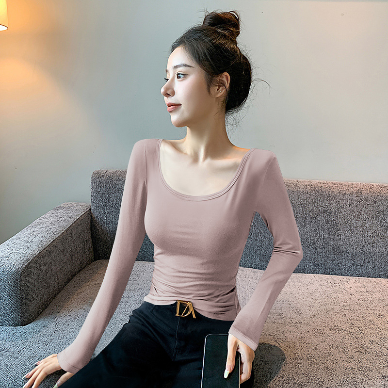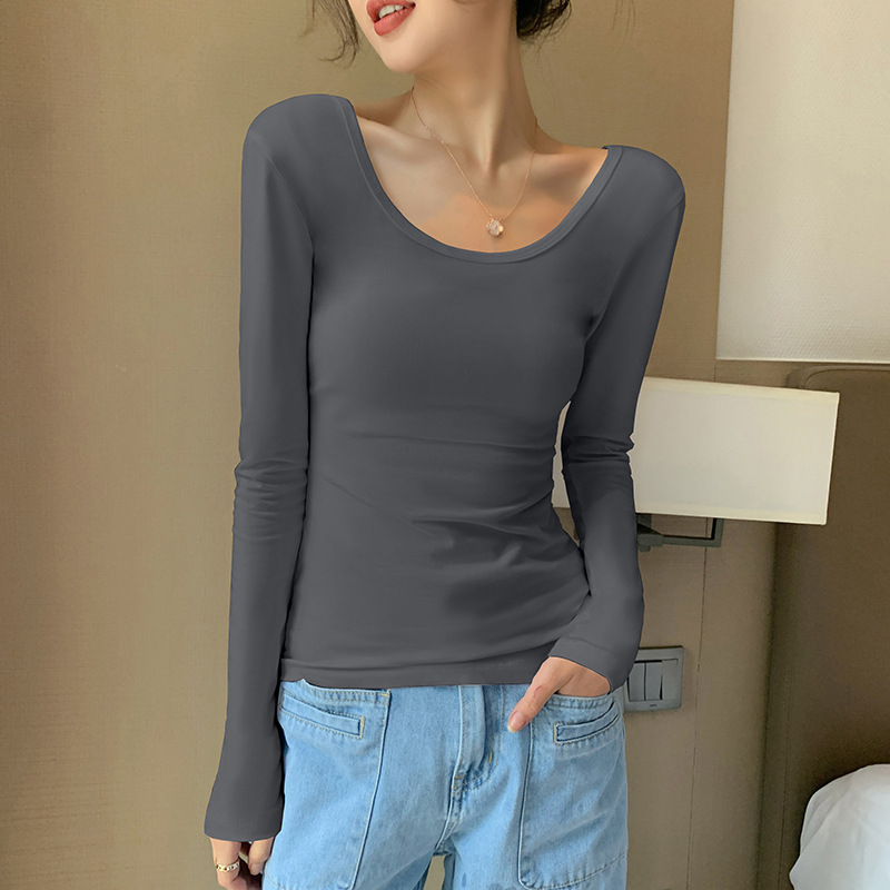 라운드 넥 블랙베이스 셔츠 여성용 스레드 봄 가을과 겨울 세트 내부 슬림 핏 서양식 긴팔 티셔츠 니트 탑