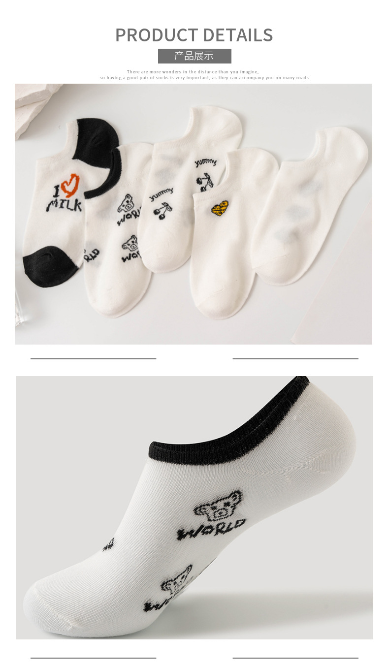 국경 양말 여성의 새로운 귀여운 트렌드 만화 한국 보이지 않는 여성 보트 양말 편안한 땀 흡수성 통기성 양말 도매
