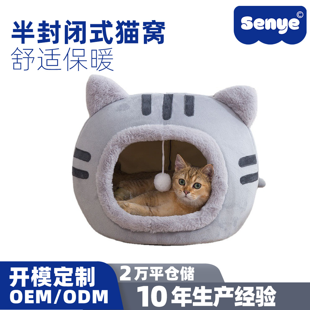 새로운 가을과 겨울 고양이 스타일 인터넷 축하 고양이 사육장 따뜻한 반 폐쇄 애완 동물 용품 고양이 집 고양이 매트스토어 가기