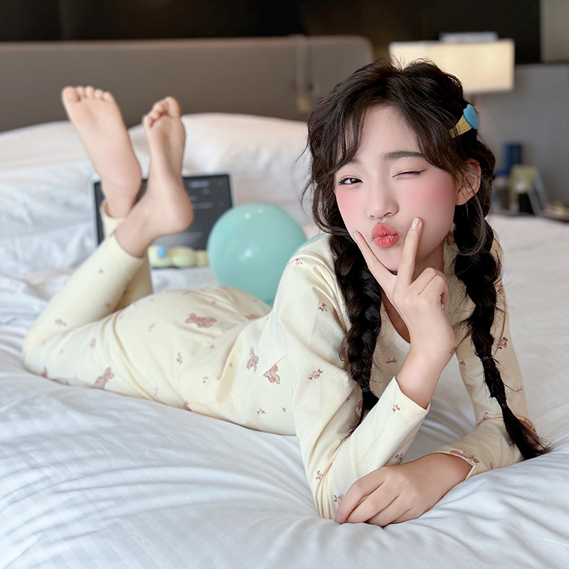 여자 가을 옷과 바지 세트 여자 만화 Bottoming 셔츠 중학교 고등학교 고등학생 열 속옷 가을 겨울 새