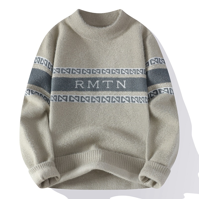 국경 간 대외 무역 세대 AliExpress 남성 니트 2024 새로운 세미 하이 칼라 크리스탈 밍크 스웨터 남성용 스웨터
