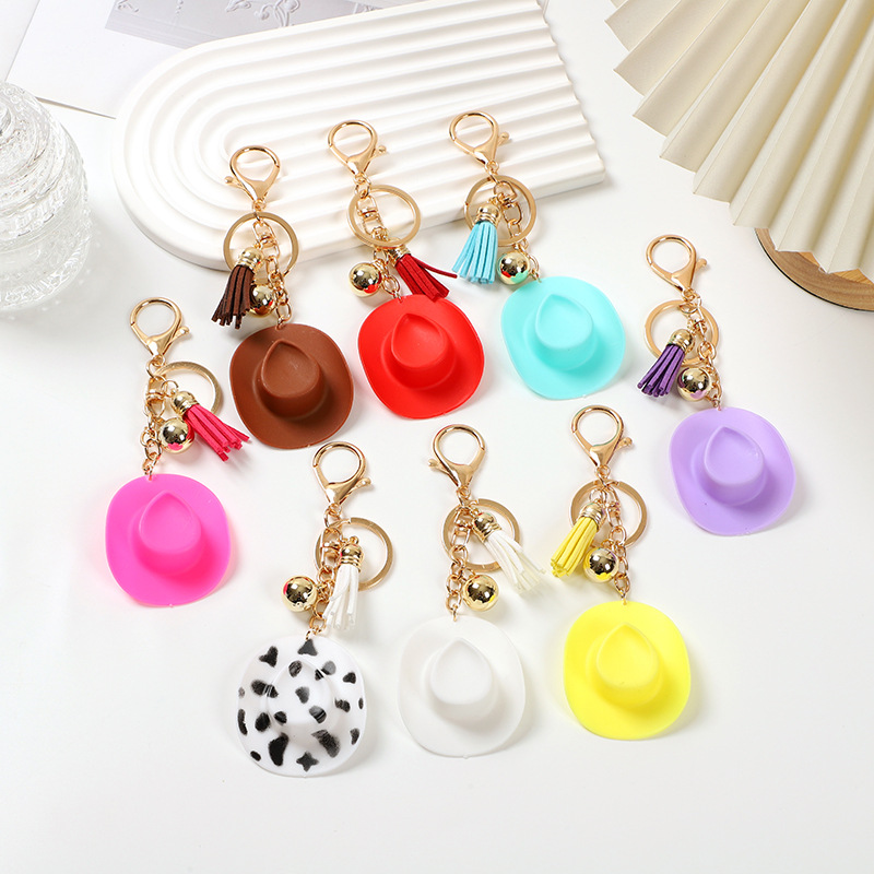 국경 간 작은 모자 키 체인 서부 카우보이 부족 스타일 다색 카우보이 모자 유제품 모자 가방 펜던트