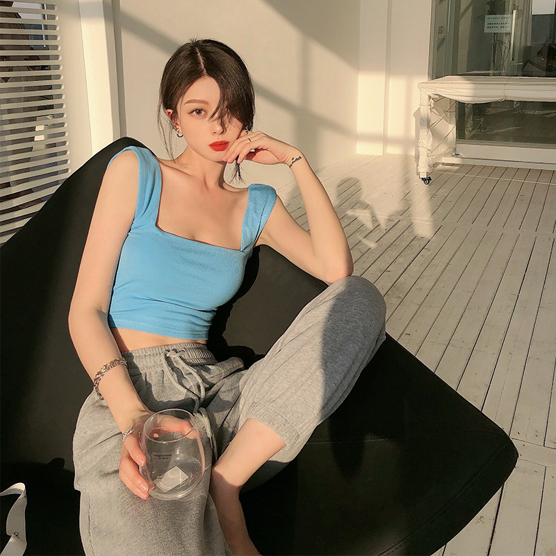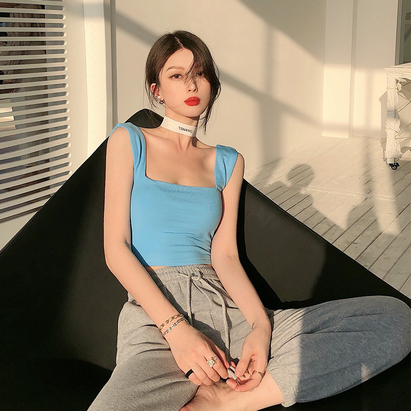 1038 # 봄에 입는 조끼, 가슴을 덮는 짧은 스타일, 슬리밍, 섹시한 가슴 감싸는 슬링 스포츠 탑 여성용스토어 가기