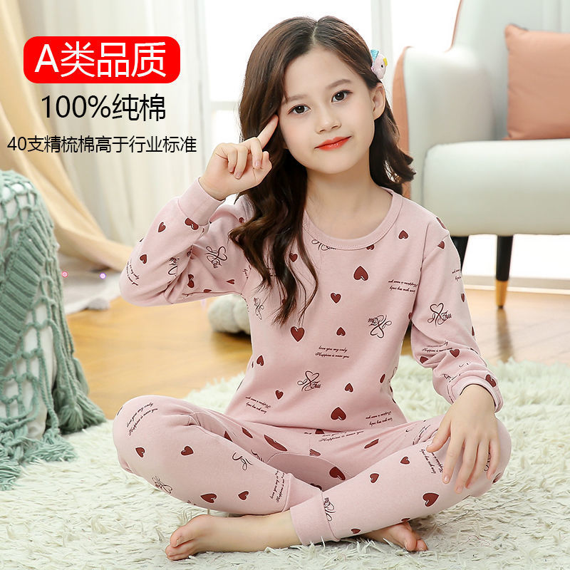 女童睡衣纯棉内衣套装宝宝秋衣秋裤儿童睡衣小孩秋装打底衫姜武红스토어 가기