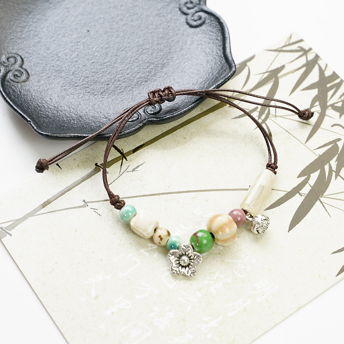Jingdezhen 세라믹 짠 팔찌 여성의 하이 엔드 센스 새로운 중국 예술적 여자 친구 Mori 골동품 핸드 로프 선물 도매