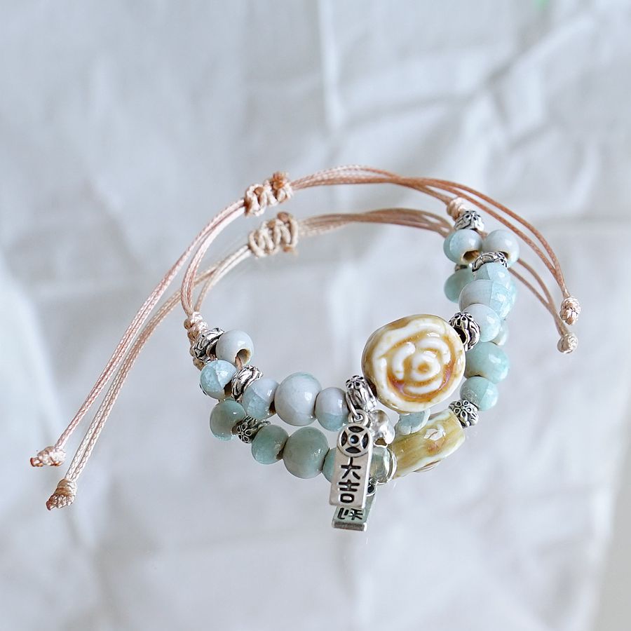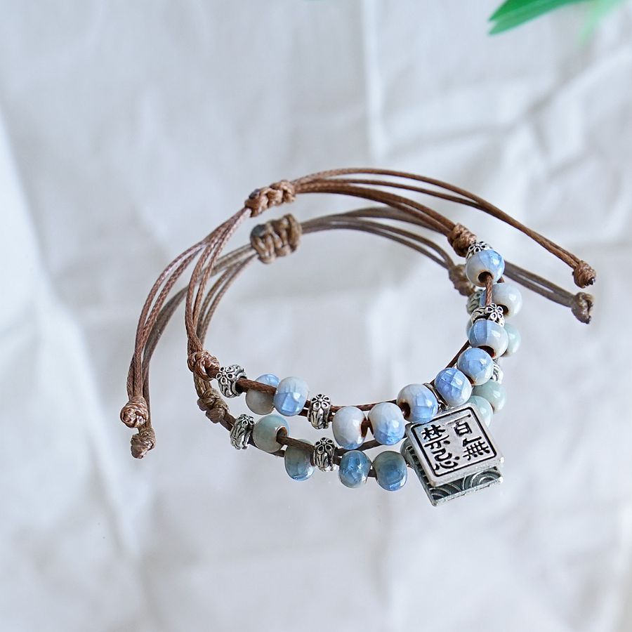 Jingdezhen 세라믹 짠 팔찌 여성의 하이 엔드 센스 새로운 중국 예술적 여자 친구 Mori 골동품 핸드 로프 선물 도매스토어 가기