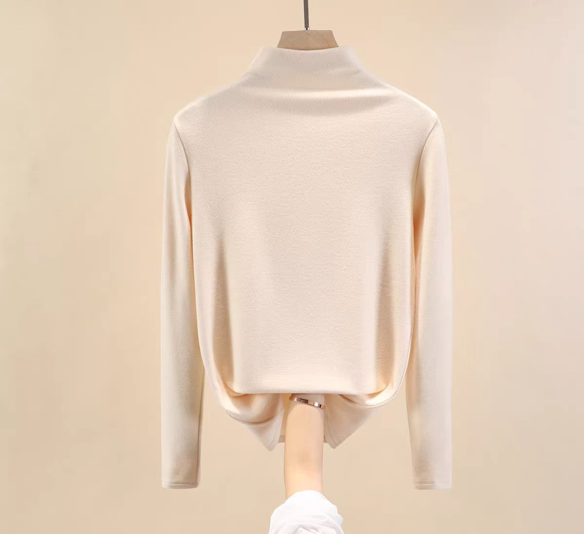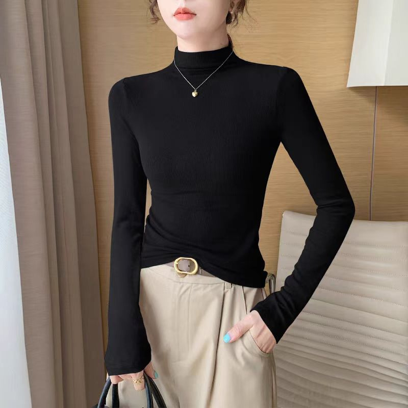 가을과 겨울 뉴 벨벳베이스 셔츠 여성용 하이 칼라 봄과 가을 웨스턴 스타일 슬림핏 블랙 슬리밍 긴팔 티셔츠 따뜻한 탑스토어 가기