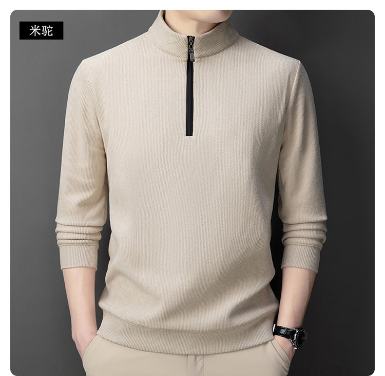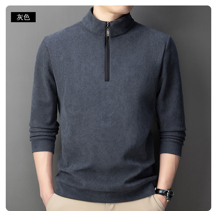 남자 기모 두꺼운 스웨트 셔츠 가을과 겨울 새로운 중년 두꺼운 따뜻한 캐주얼 칼라 솔리드 컬러 풀오버 긴팔 티셔츠스토어 가기