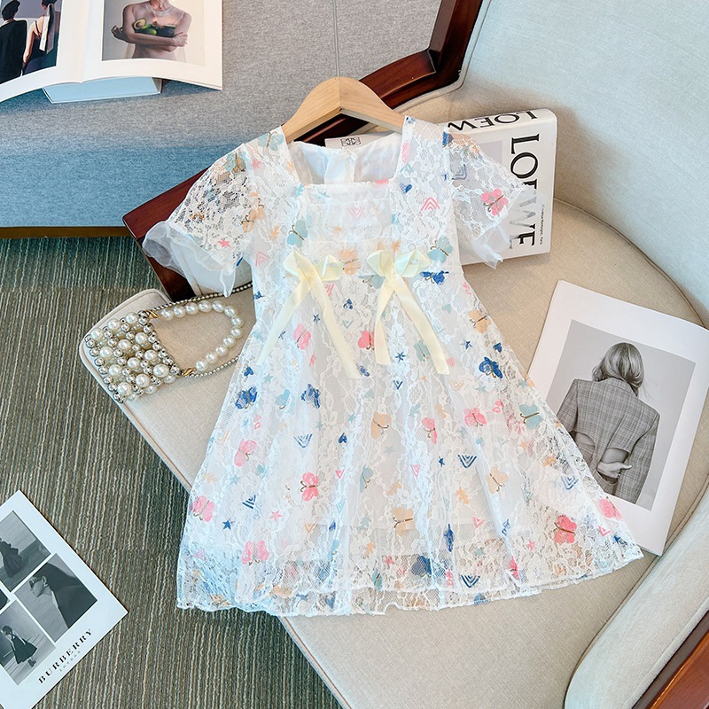 소녀 원피스 여름 어린이 서양식 공주 원피스 나비 꽃 원피스 새로운 도착 활 광장 칼라 원사 원피스스토어 가기