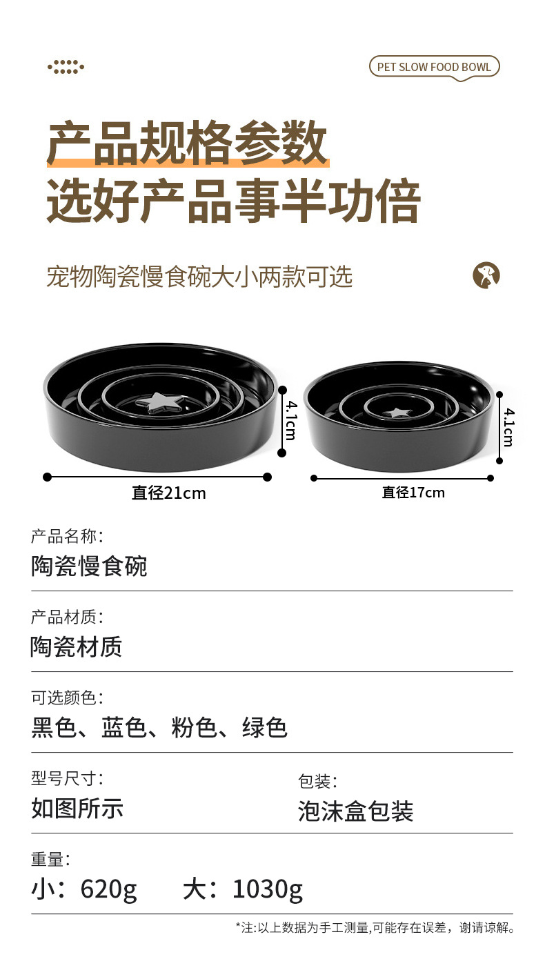 세라믹 반려동물 슬로우 푸드 그릇, 중대형견 질식 방지 그릇, 고양이 그릇, 강아지 그릇, 물그릇, 고양이와 강아지 식기, 두꺼운 세라믹스토어 가기