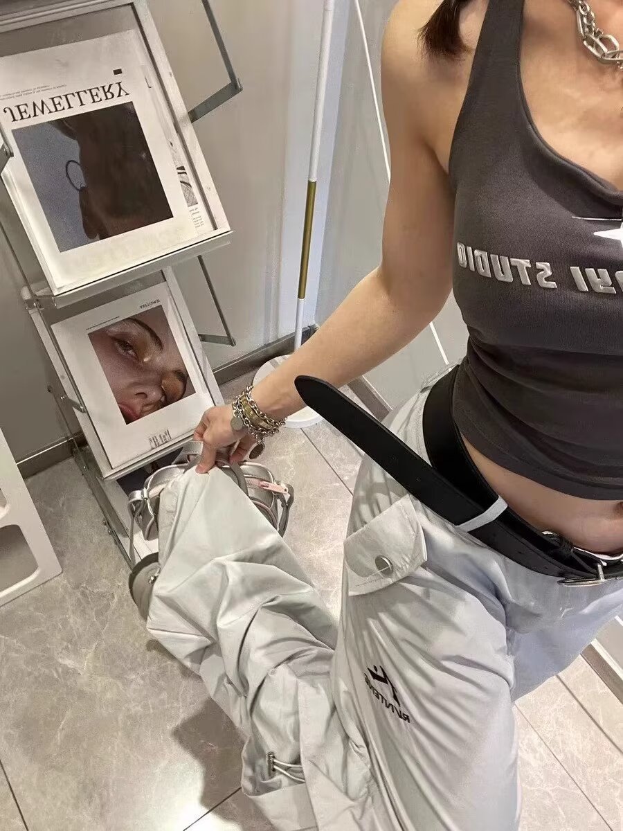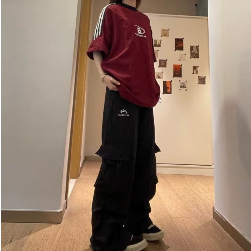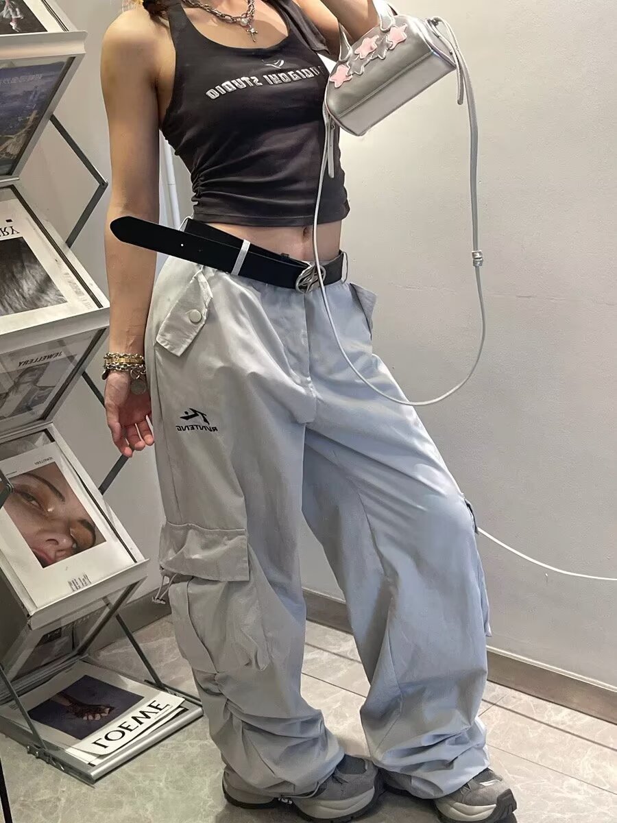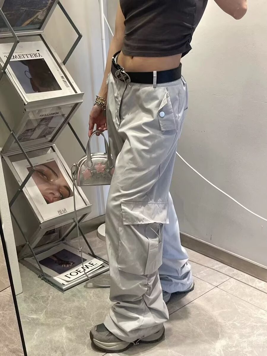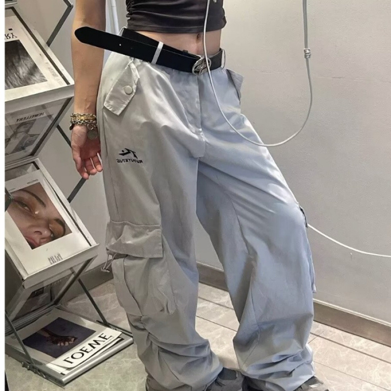 여름 얇은 미국식 힙합 댄스 바지 오프 화이트 빠른 건조 낙하산 병, 여성을위한 캐주얼 스포츠 작업복 바지 충전스토어 가기