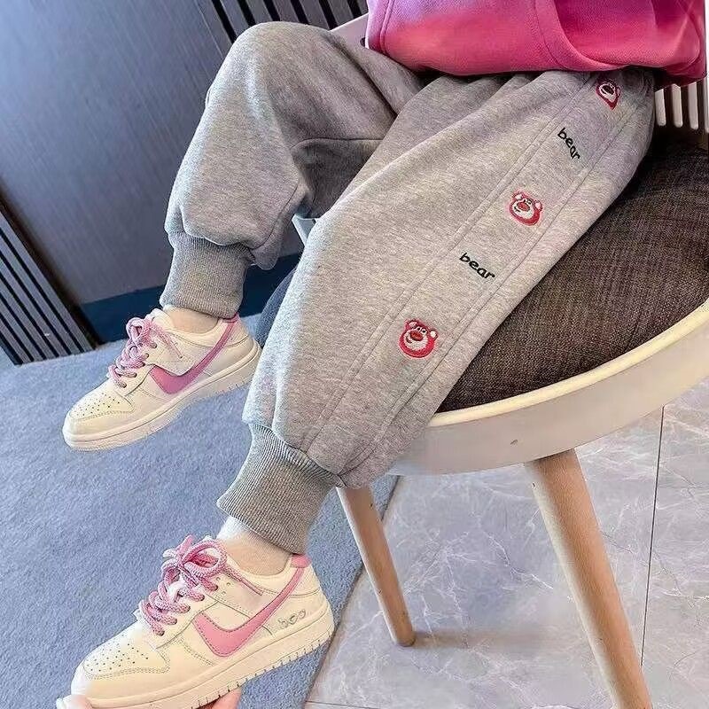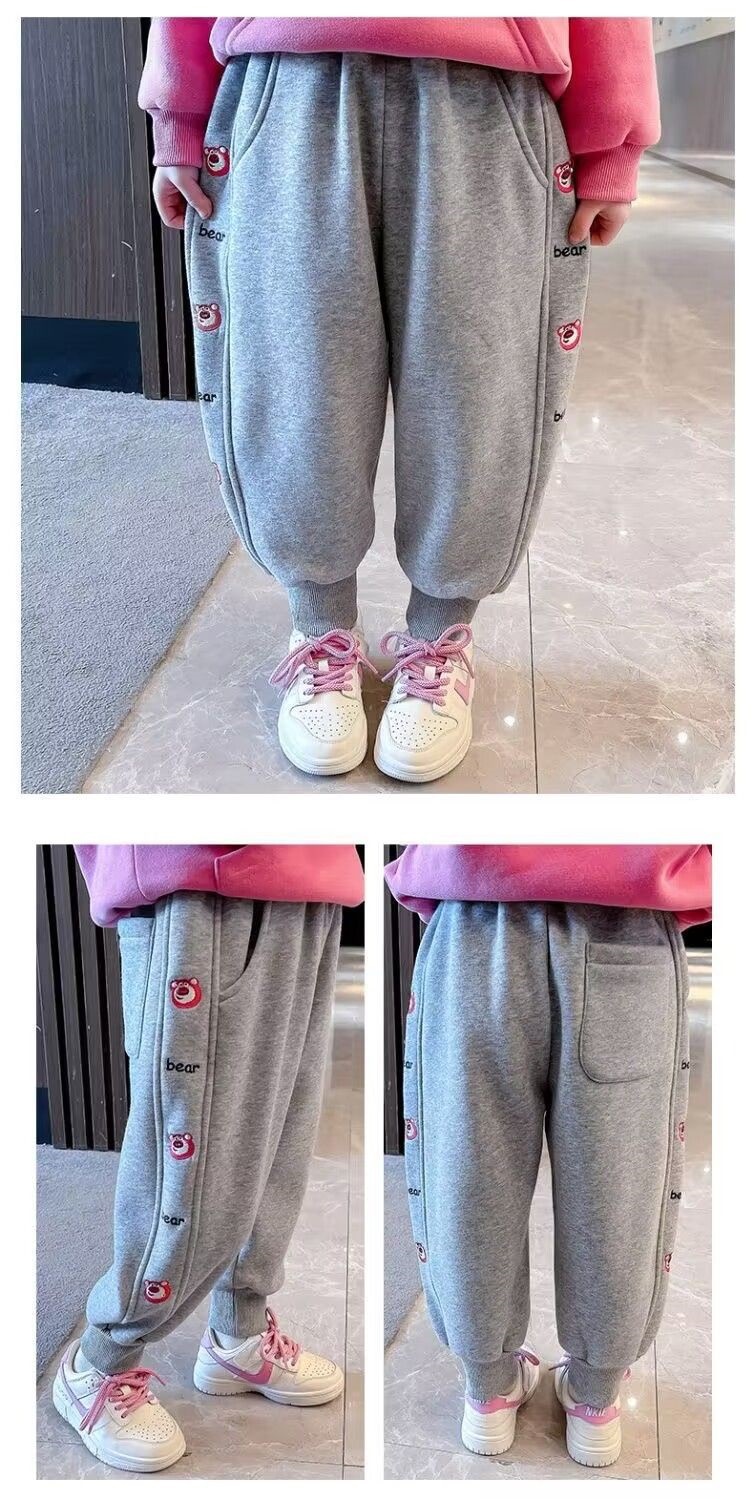 소녀 캐주얼 바지 2024 봄과 가을 새로운 어린이 외부 착용 기모 바지 겨울 착용 스포츠 바지 큰 어린이와 소녀