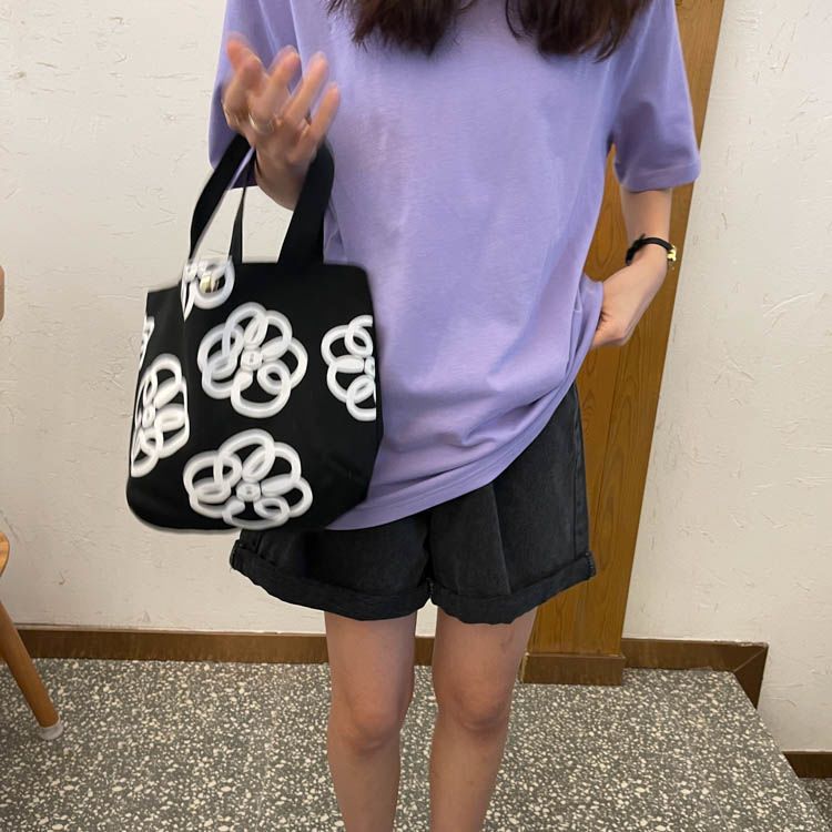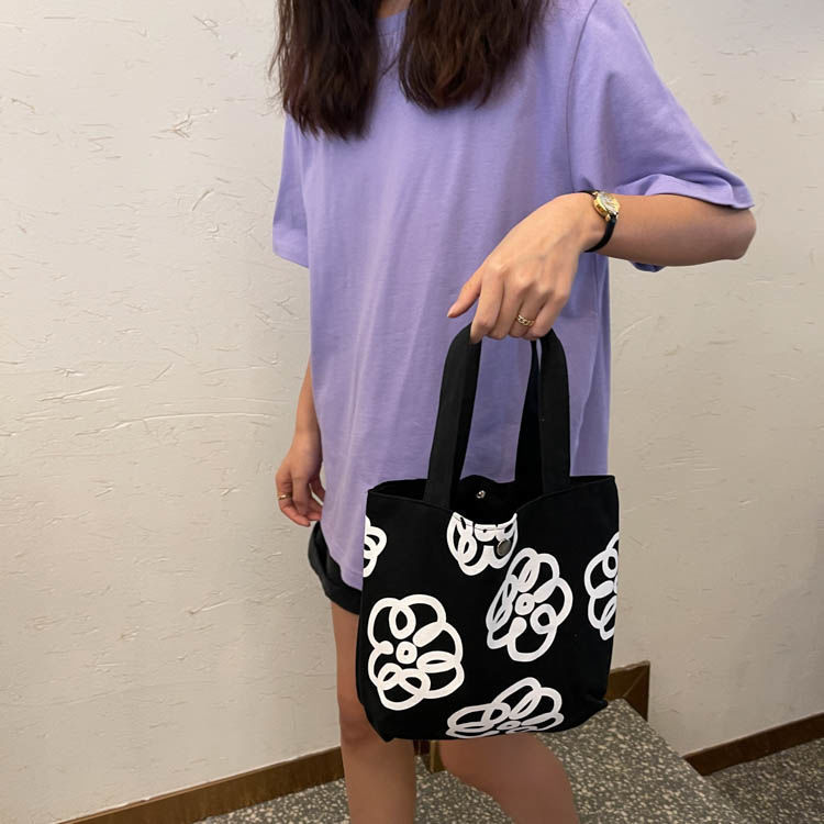 • 검정색과 흰색 꽃 작은 핸드백 ✦