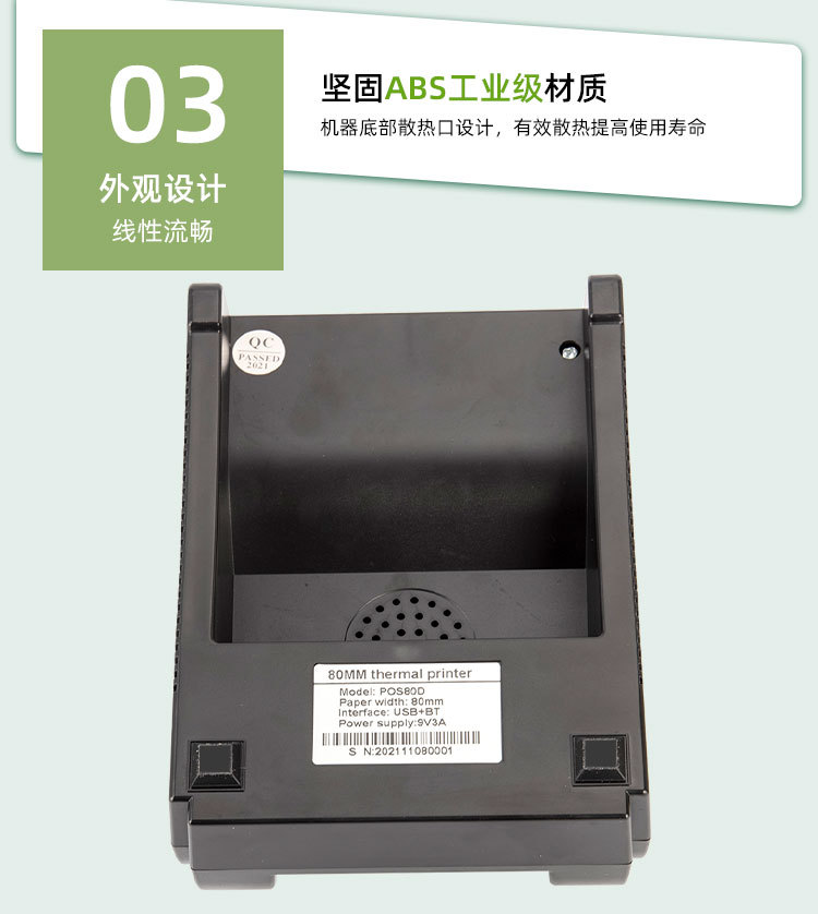 告别传统的点阵式打印机,现在,我们为您提供更多高效桌面打印机!这款POS80D蓝牙热敏打印机,打印速度快,可以快速完成大量打印任务,提升工作效率。其次,热敏打印技术无需墨盒、墨粉等耗材,节省了成本,使用更加经济实惠。同时,热敏打印机打印效果清晰,文字、图片都能呈现出色彩鲜艳、细节清晰的效果,满足不同打印需求。桌面热敏打印机体积小巧,便于携带和放置,非常适合家庭办公或小型办公场所使用。另外,热敏打印机操作简便,即插即用,无需复杂的设置,使用起来非常便捷。总之,桌面热敏打印机具有快速、经济、高质、便捷等多重优势,是办公、商务等场合不可或缺的办公工具。