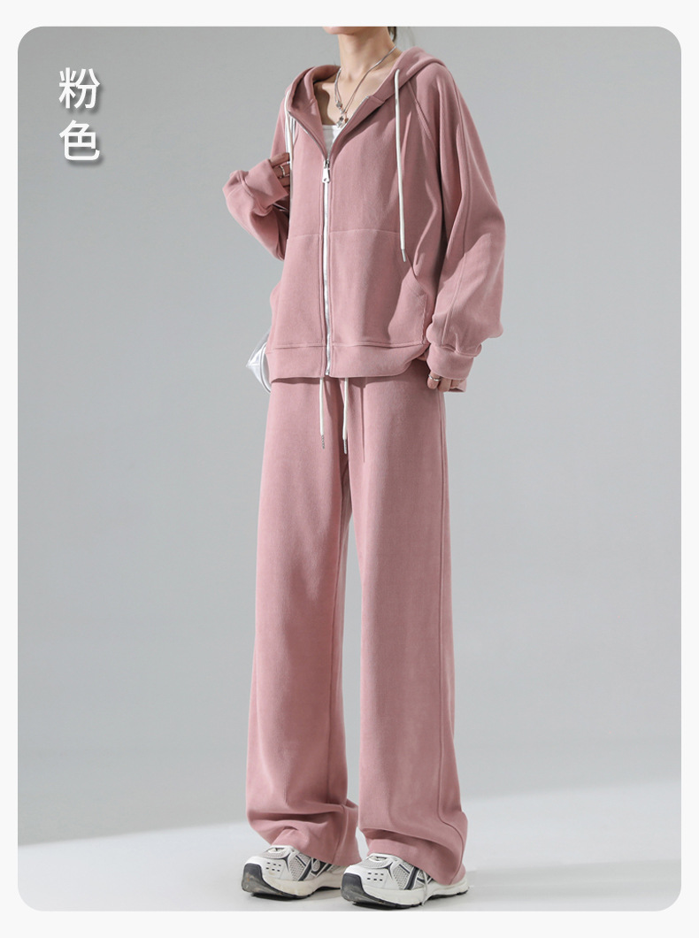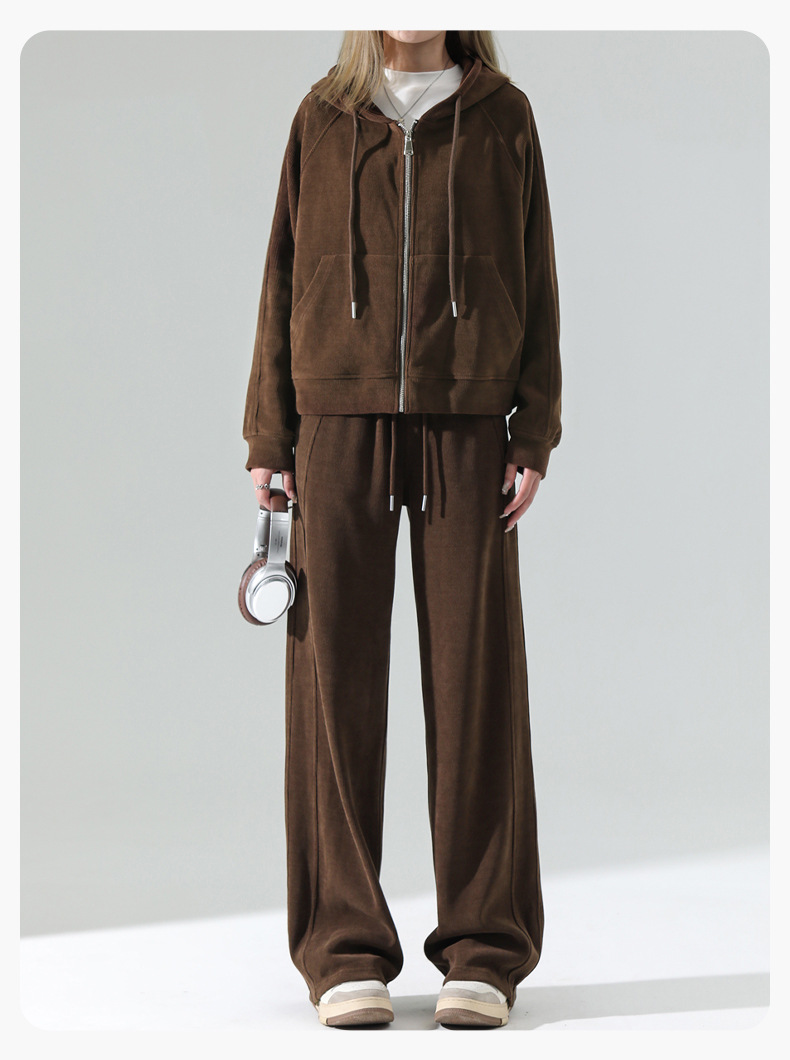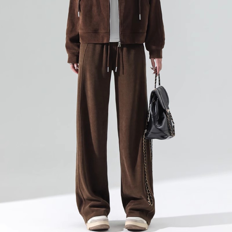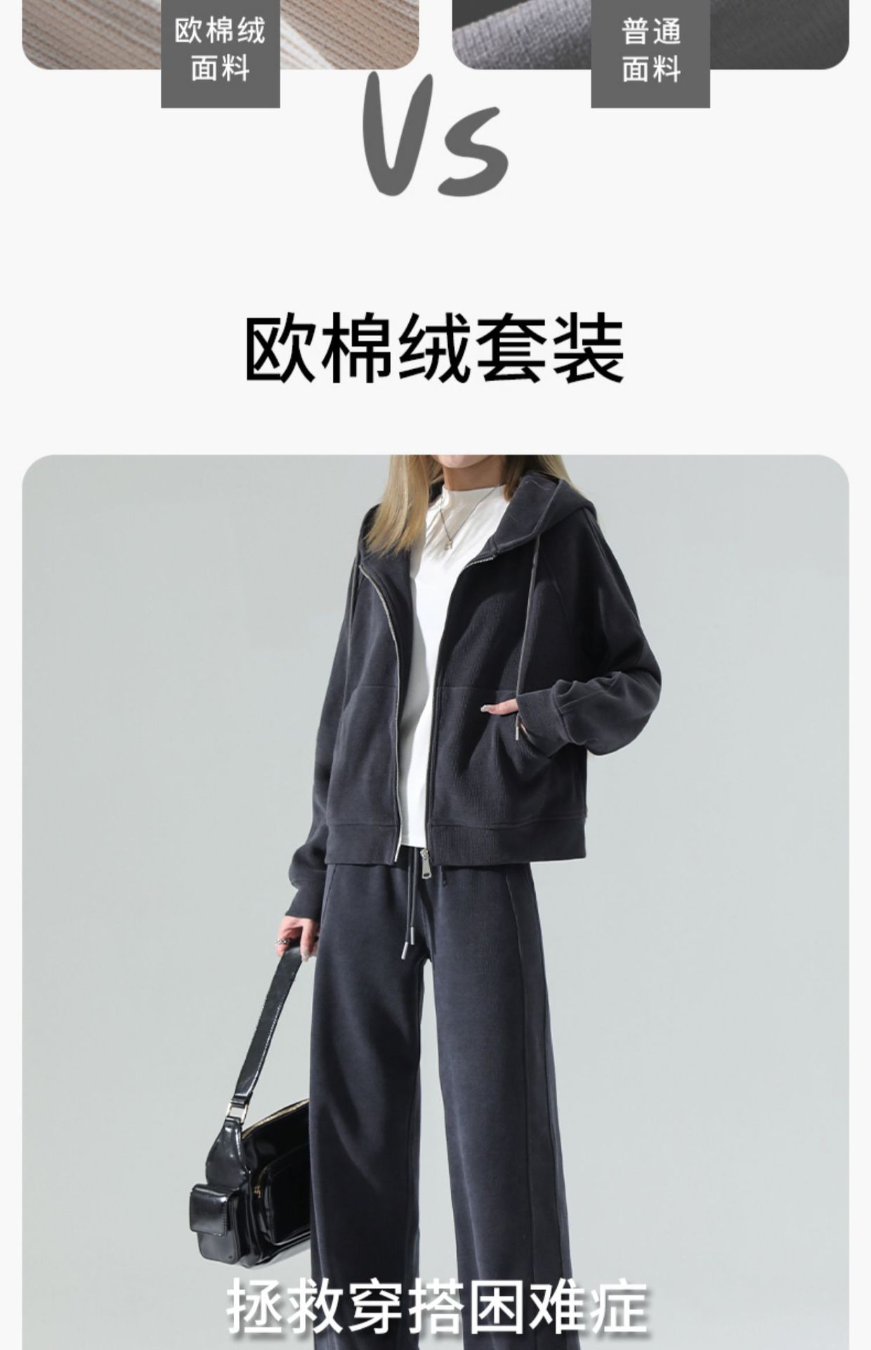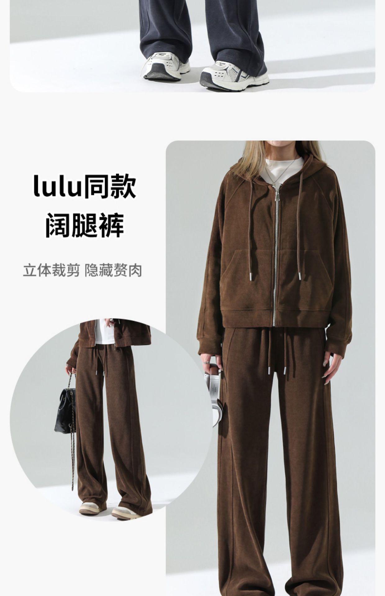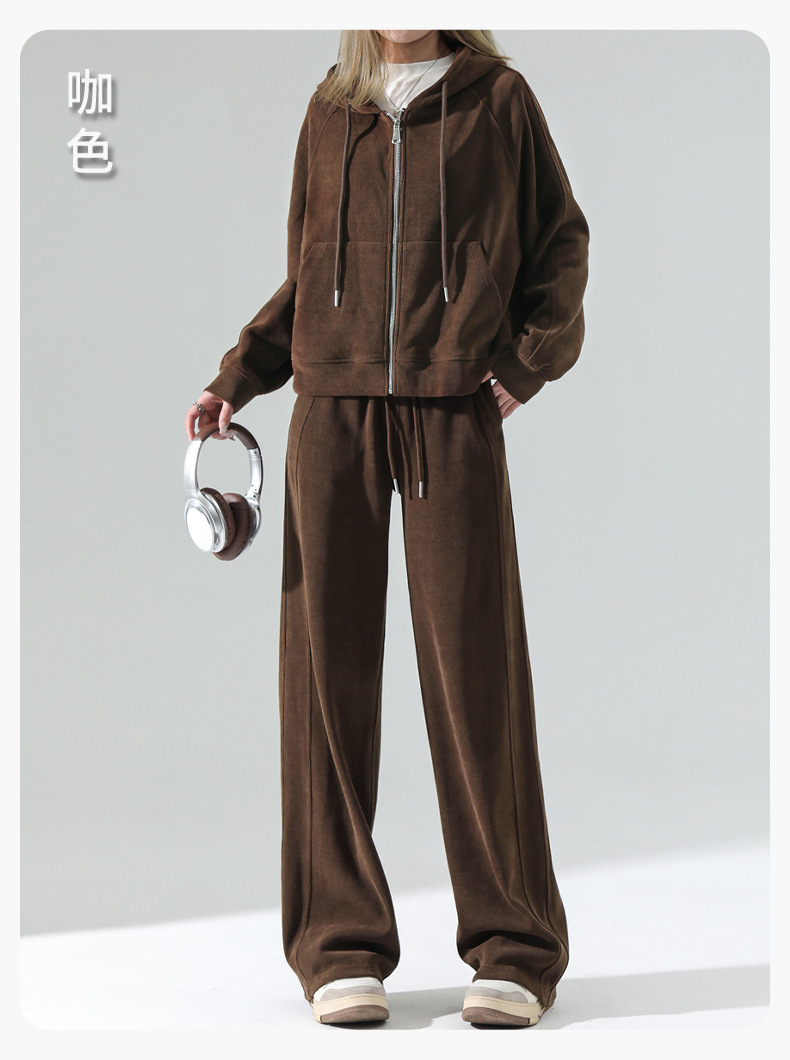 셔닐 캐주얼 스포츠 세트 여성용 가을 겨울 2025 신상 벨벳 와이드 팬츠 스웨트셔츠 자켓 투피스 세트스토어 가기