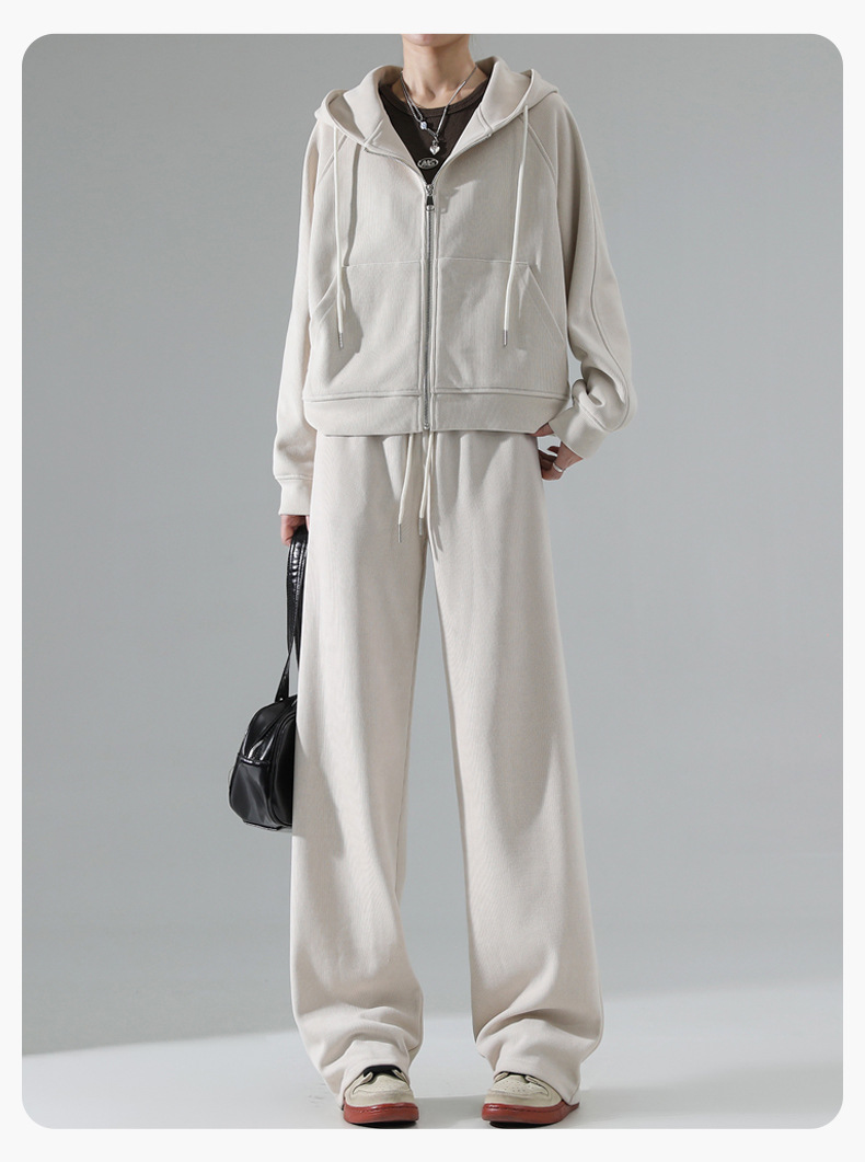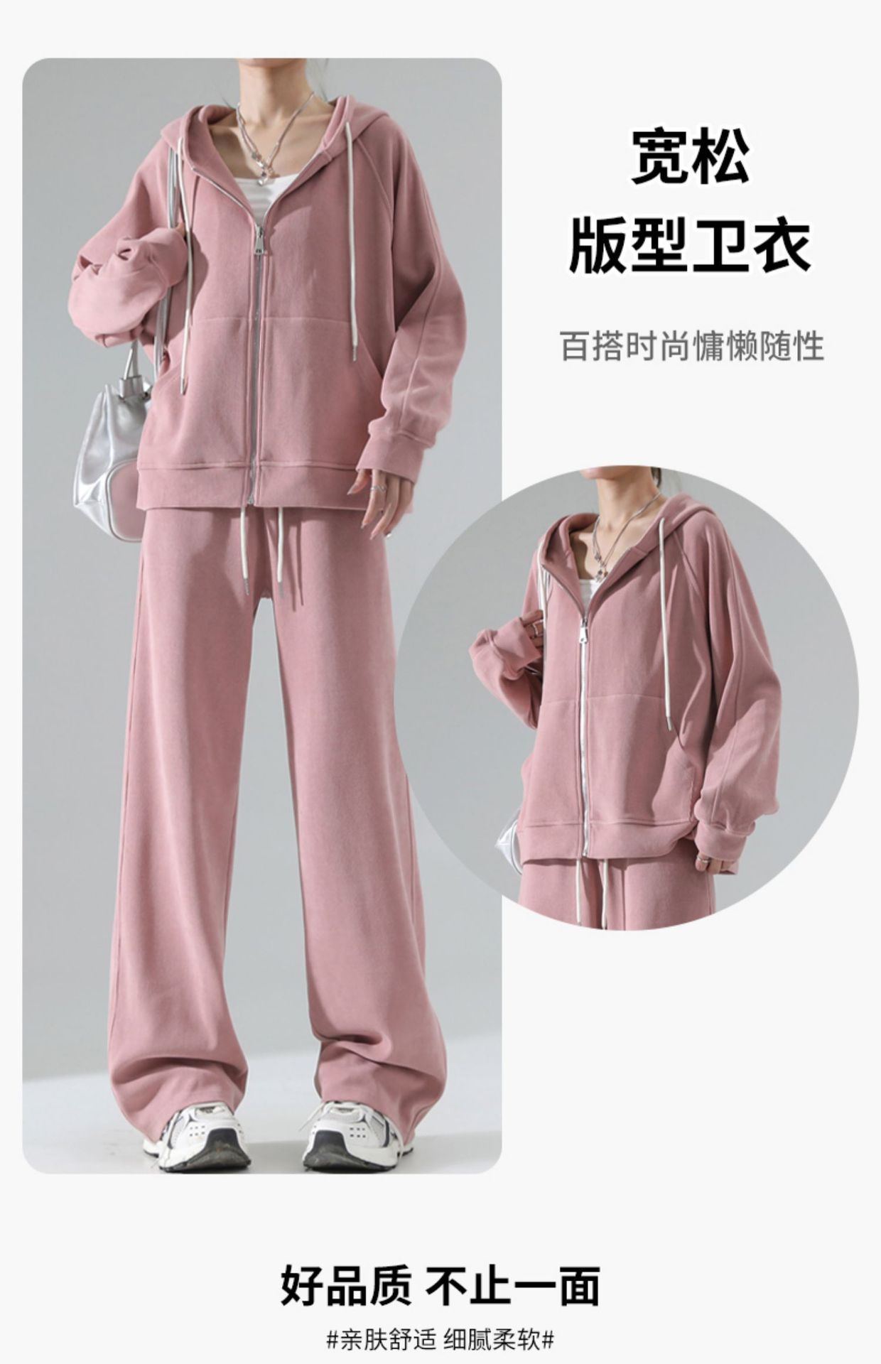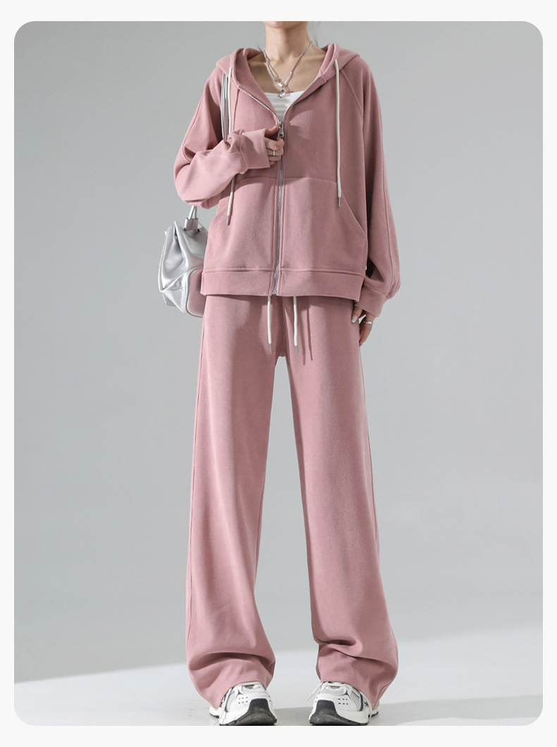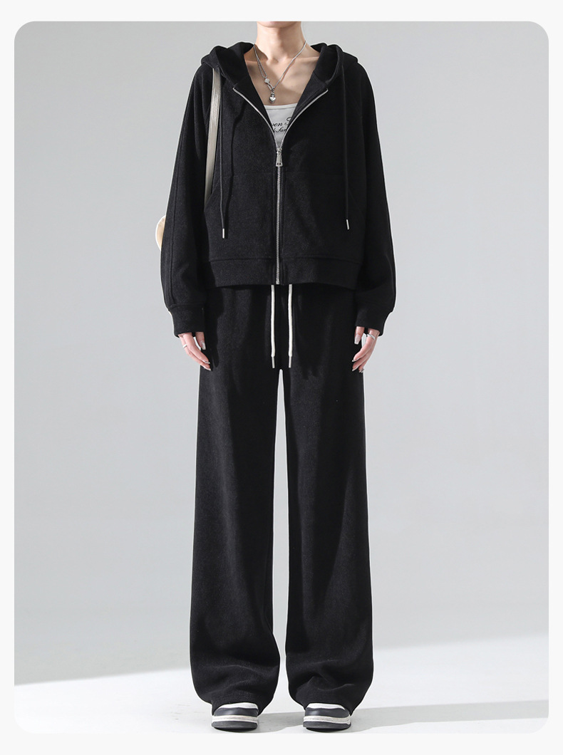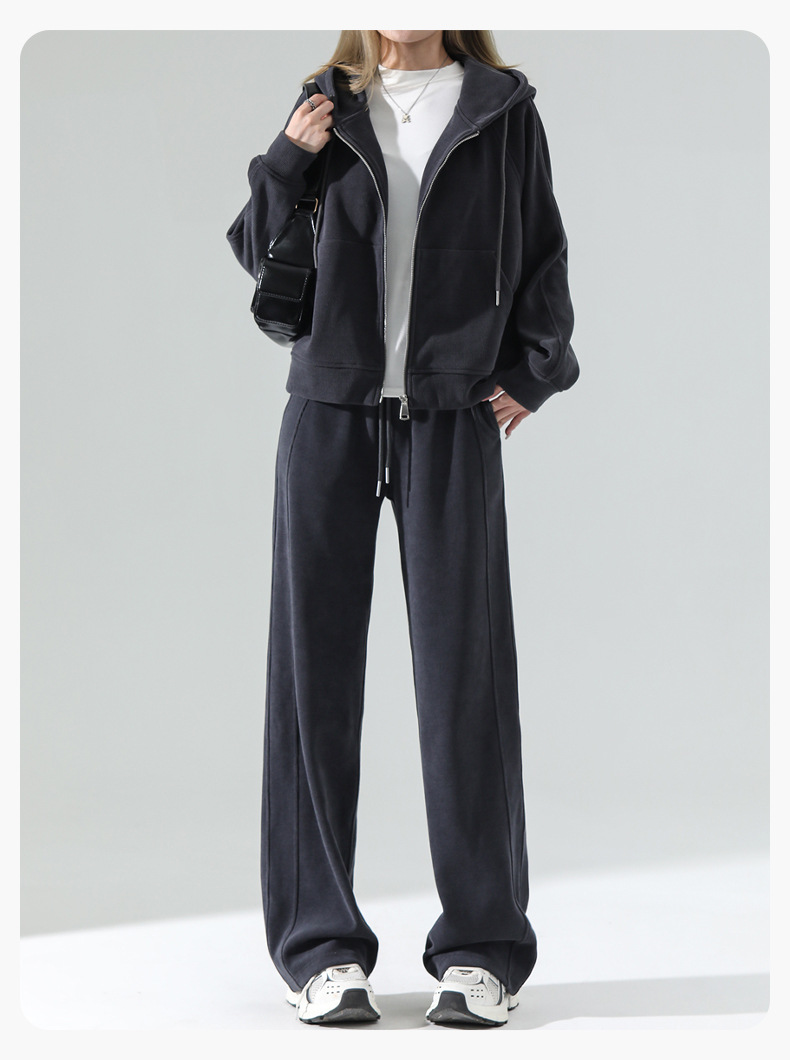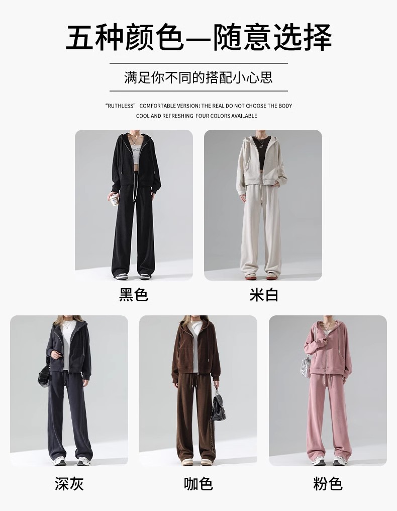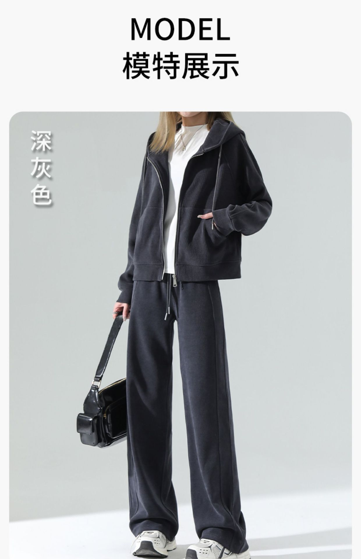 셔닐 캐주얼 스포츠 세트 여성용 가을 겨울 2025 신상 벨벳 와이드 팬츠 스웨트셔츠 자켓 투피스 세트스토어 가기