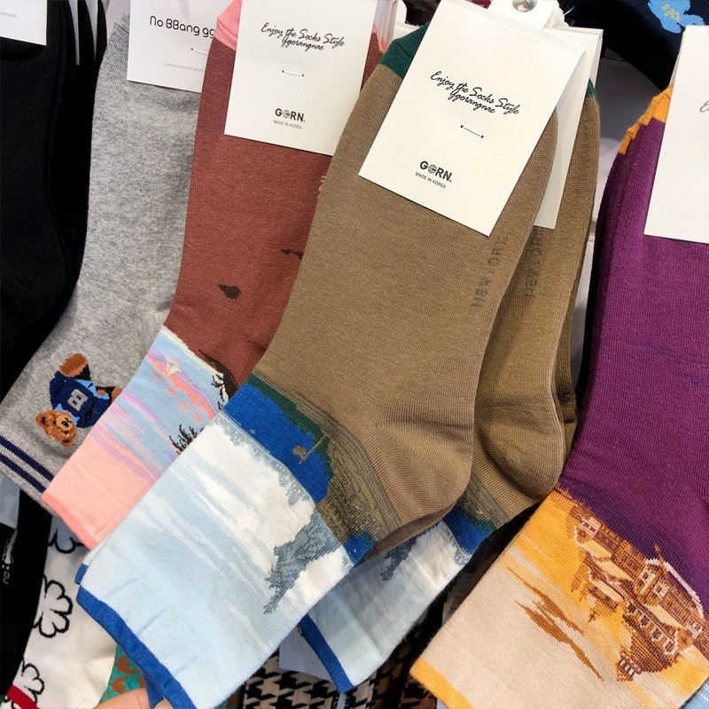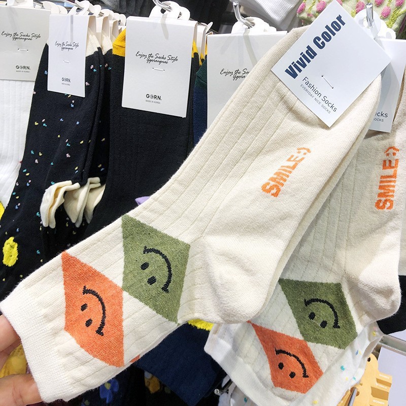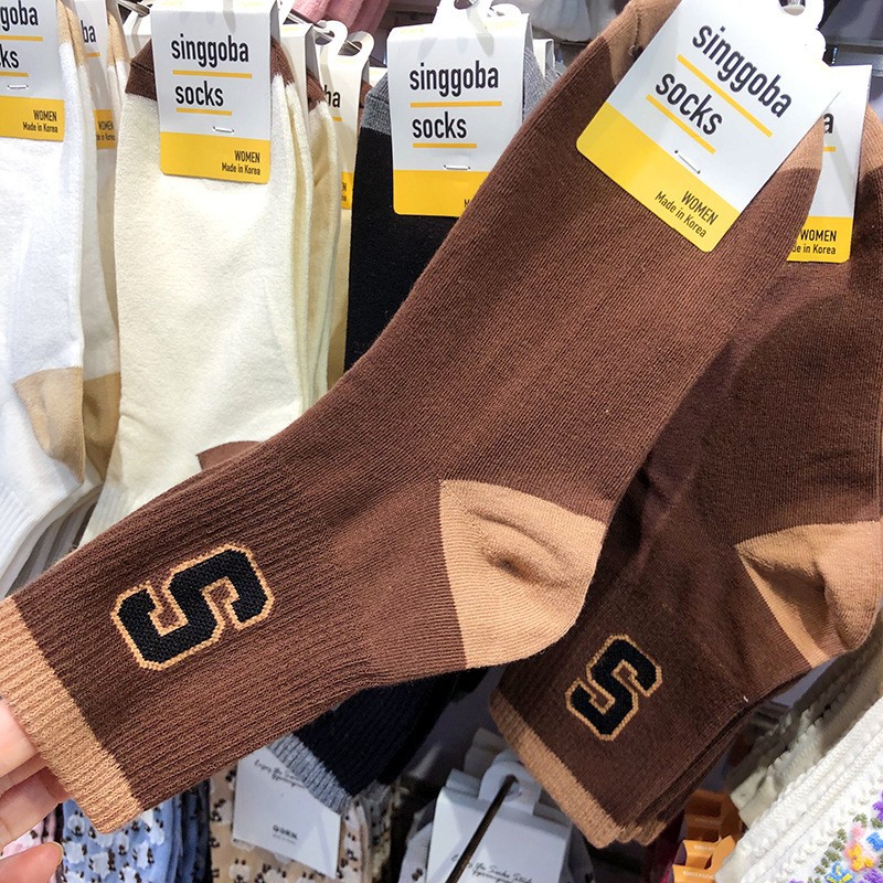 2024 가을과 겨울 새로운 Maillard 컬러 한국 양말 양각 꽃 여성 양말 미드 튜브 만화 활면 양말스토어 가기