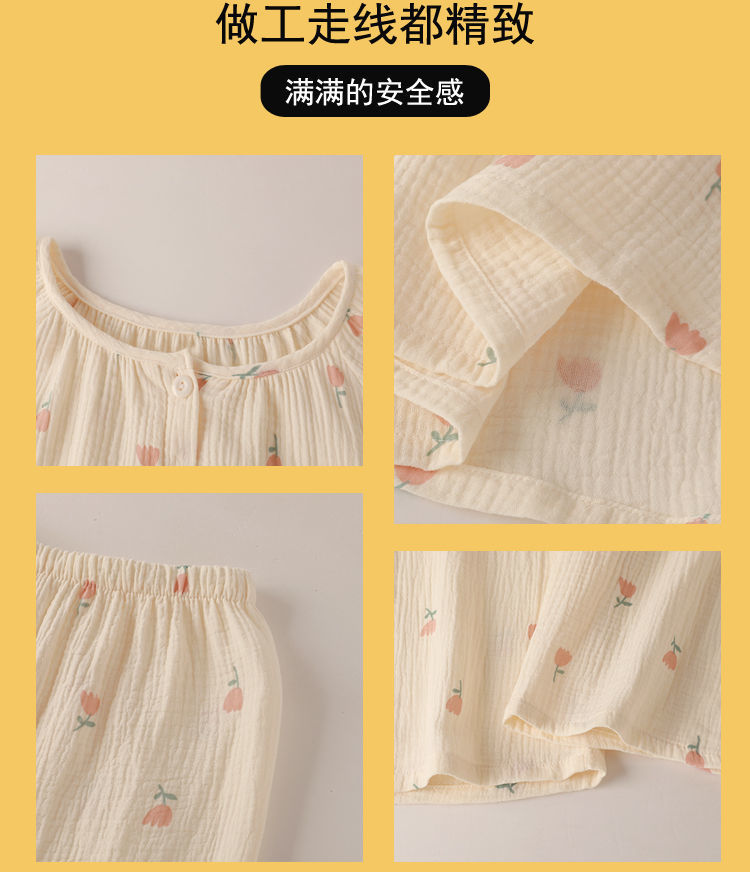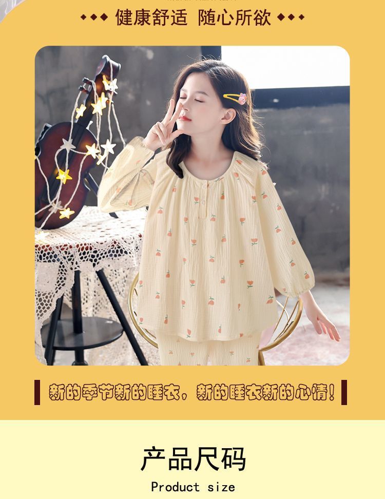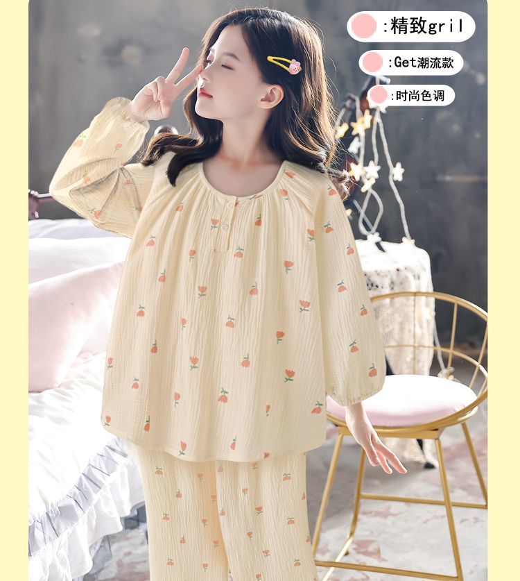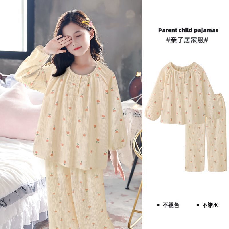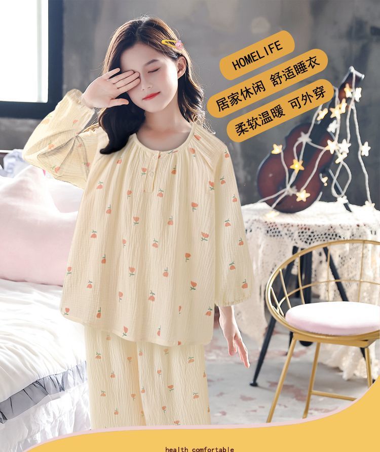 소녀의 달콤한 분위기 튤립 긴팔 바지 파자마 2024 봄과 가을 얇은 의상 투피스 세트스토어 가기