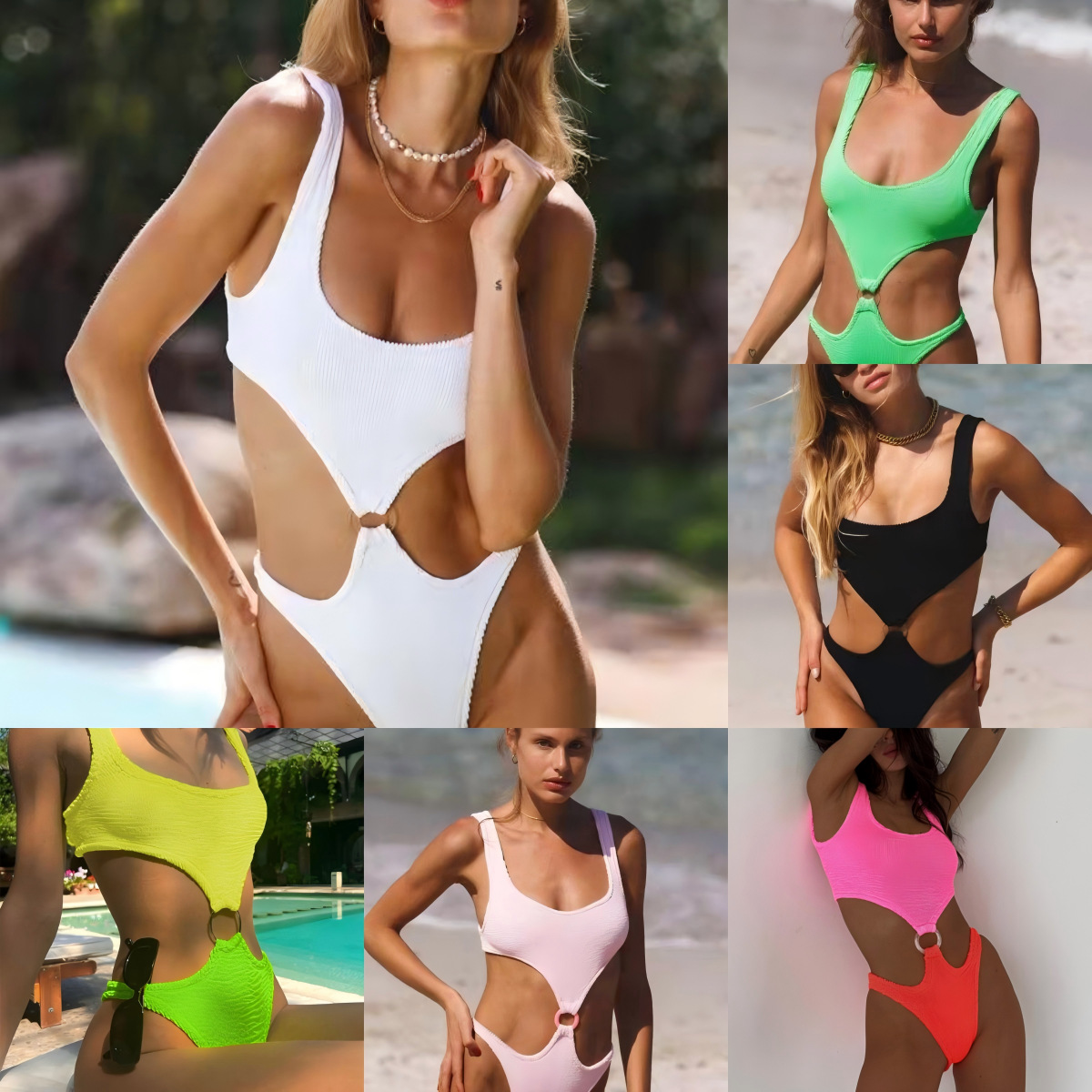 2024 새로운 수영복 여성 유럽과 미국의 대외 무역 비키니 단색 주름 수영복 중공 원피스 비키니 재고스토어 가기