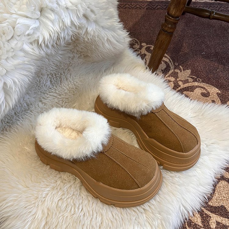 2024 가을과 겨울 새로운 두꺼운 밑창 증가 페달 Baotou 하프 드래그 기모 두꺼운 따뜻한 미끄럼 마오 마오 신발 여성스토어 가기