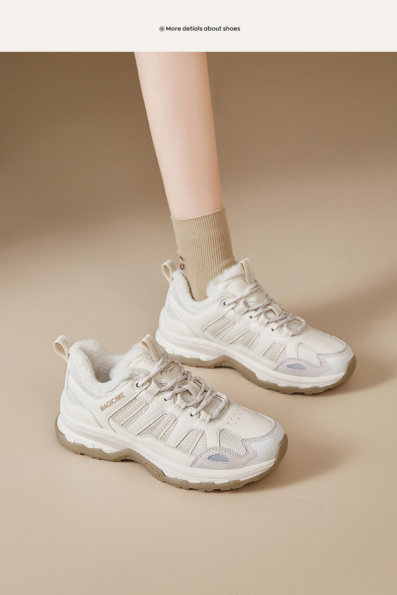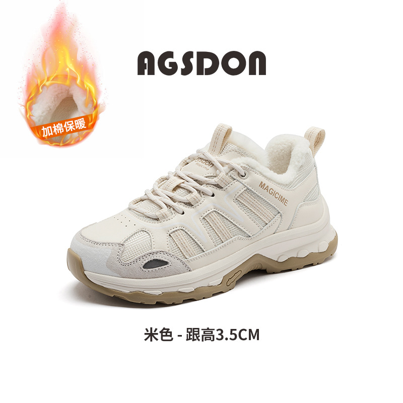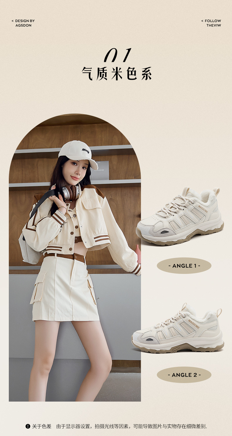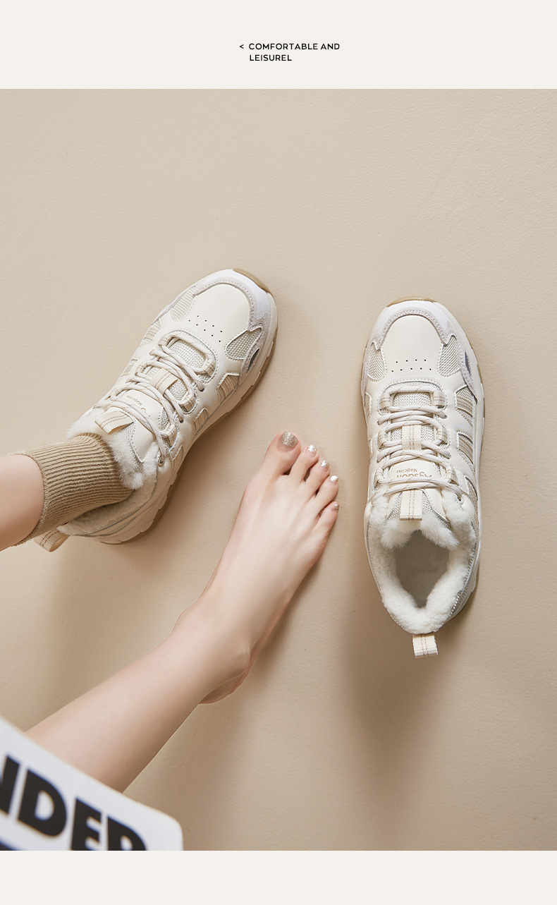 오구시덴 플러스벨벳 두꺼운 밑창 아빠 신발 여성용 2025년 가을 겨울 신상 화이트 캐주얼 등산 아웃도어 운동화스토어 가기