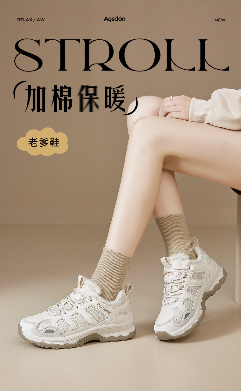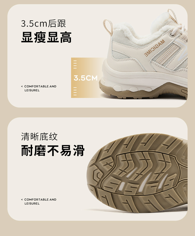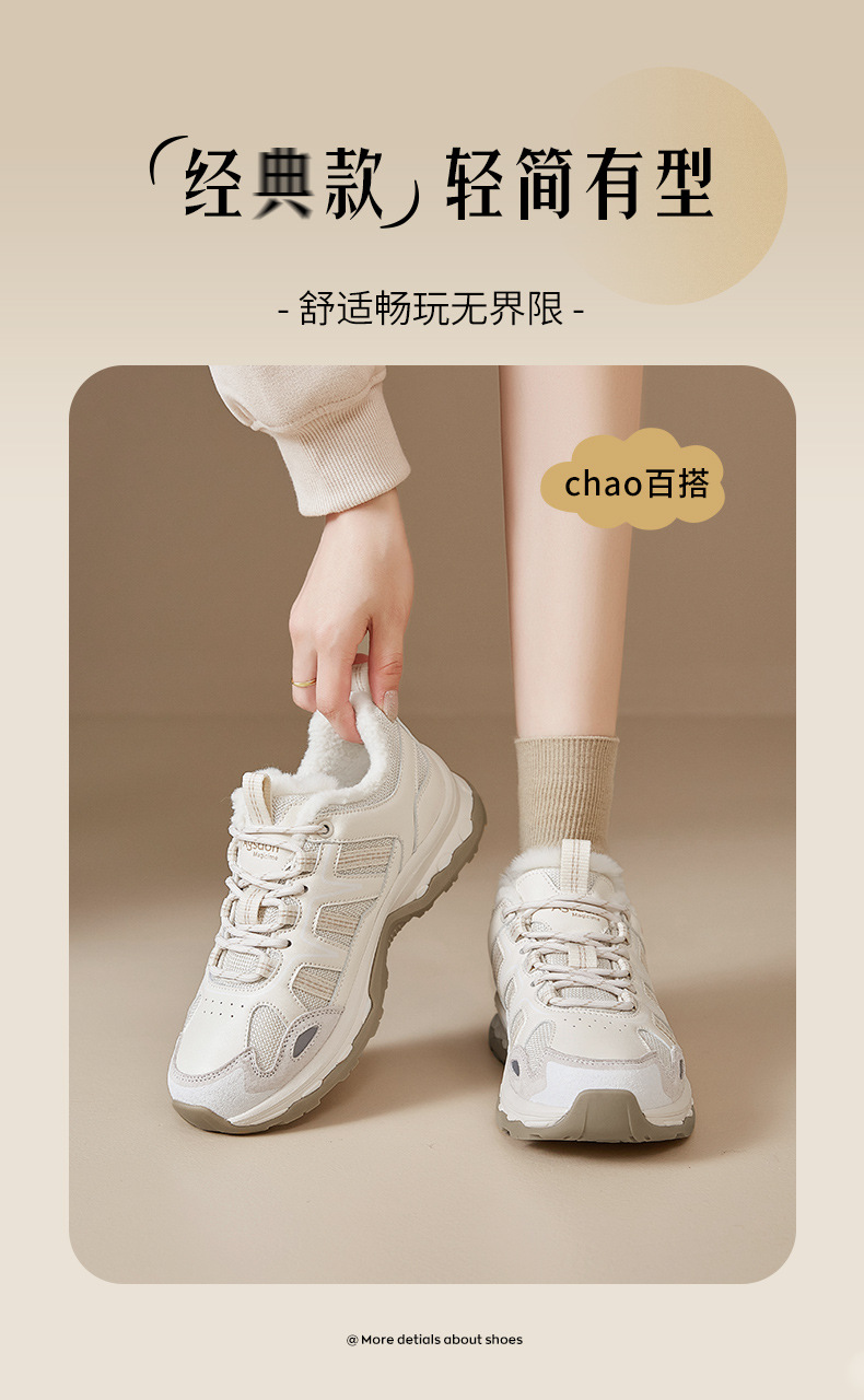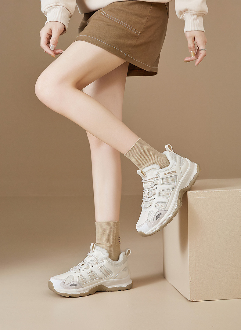 오구시덴 플러스벨벳 두꺼운 밑창 아빠 신발 여성용 2025년 가을 겨울 신상 화이트 캐주얼 등산 아웃도어 운동화스토어 가기