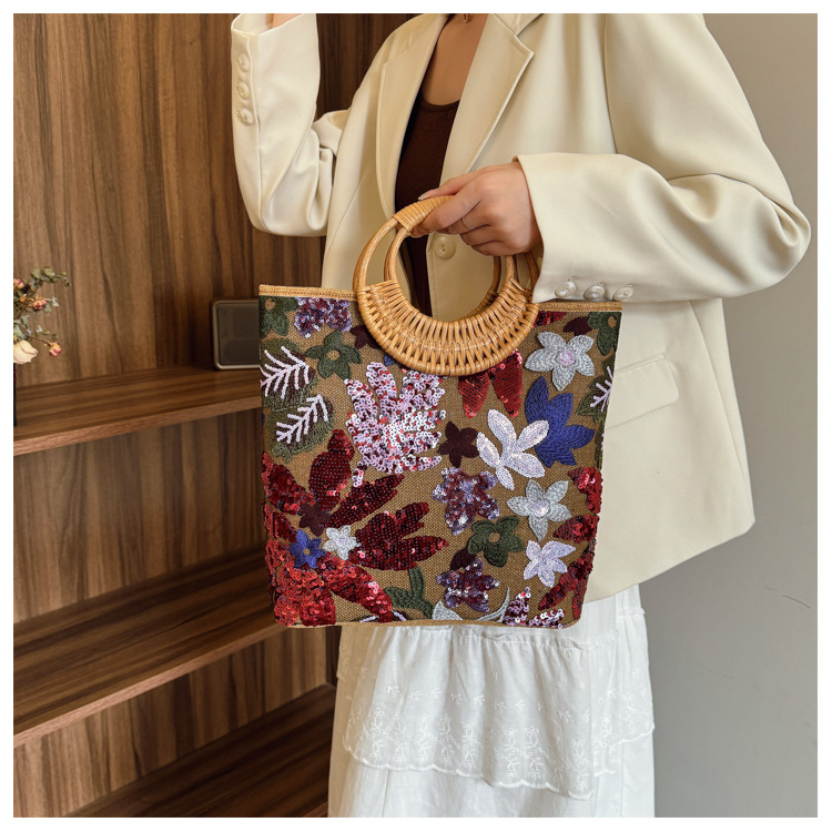 국경 간 해골 밀짚 토트 백 하이 엔드 센스 틈새 여성용 가방 대용량 유행 짠 핸드백스토어 가기