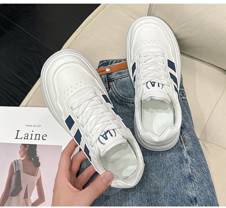 2024 봄과 가을 새로운 스포츠 캐주얼 화이트 슈즈 여성 Ins 한국식 두꺼운 가죽 올매치 싱글 레이어 슈즈 패셔너블 스니커즈