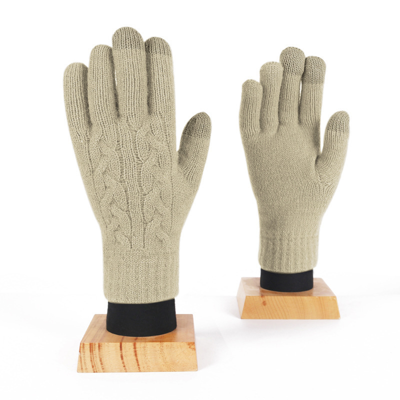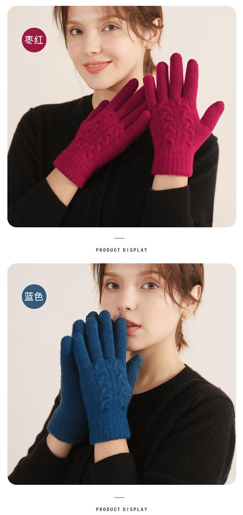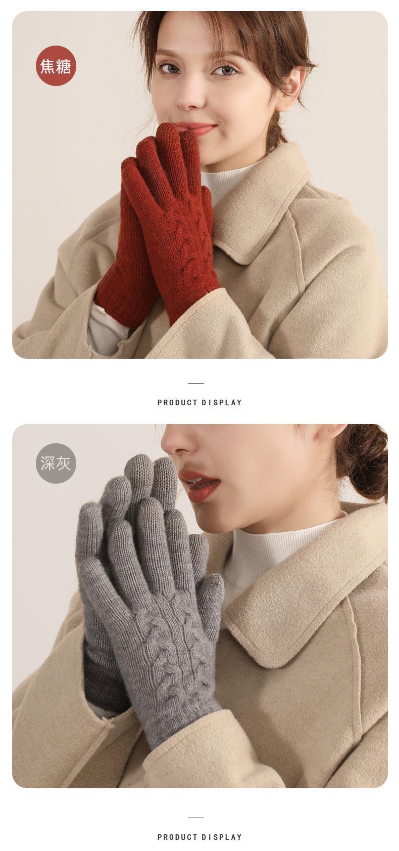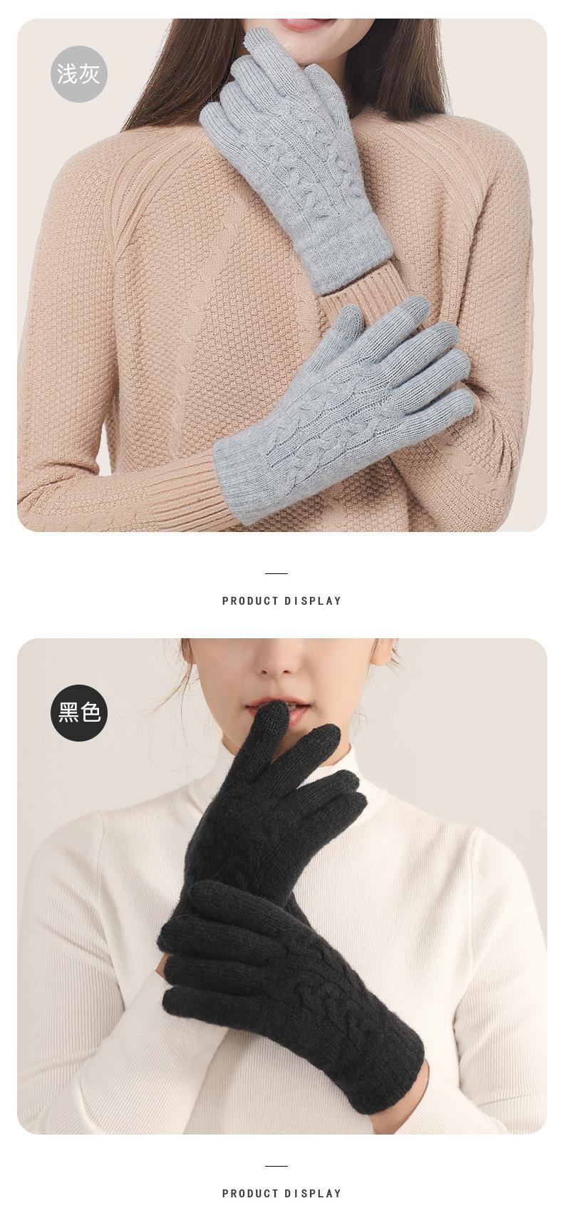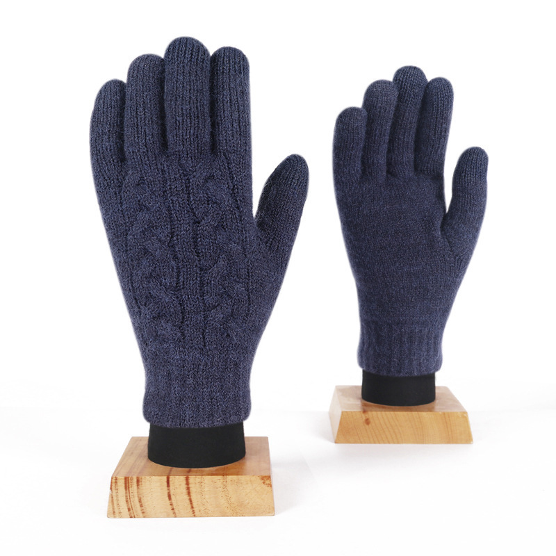 겨울 여자의 더블 레이어 따뜻한 터치 스크린 니트 장갑 양모 감기 방지 솔리드 컬러 기모 두꺼운 남자 야외 승마