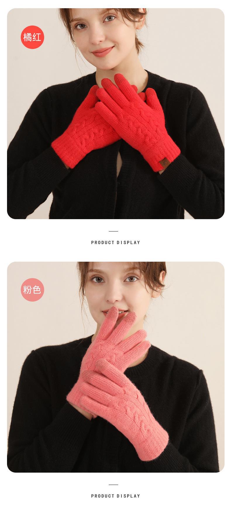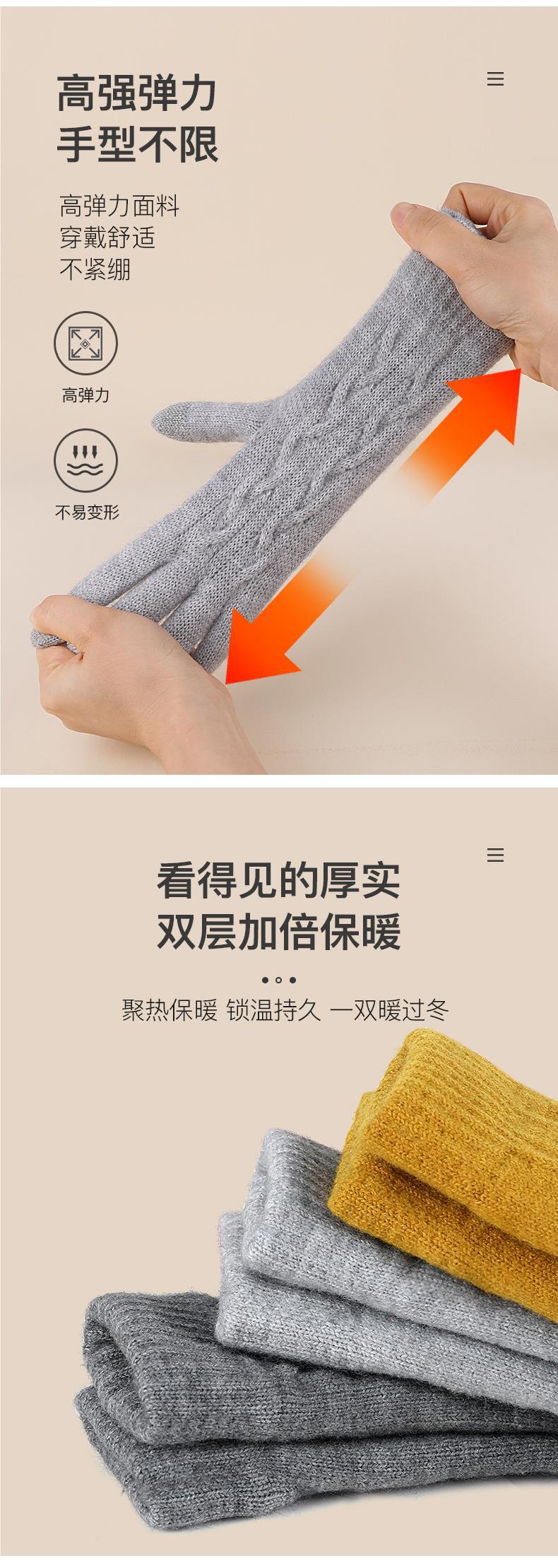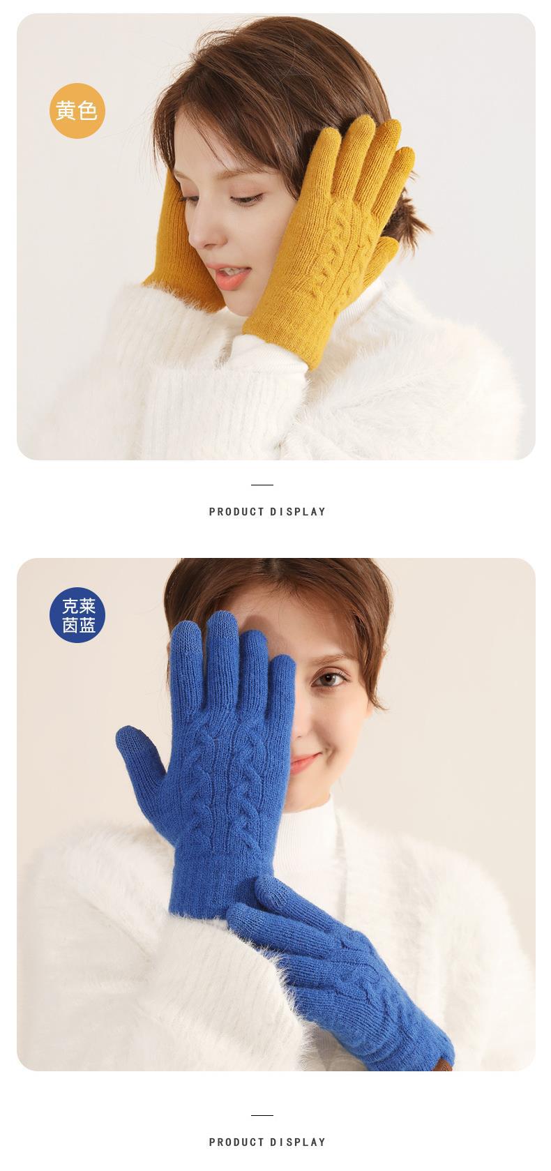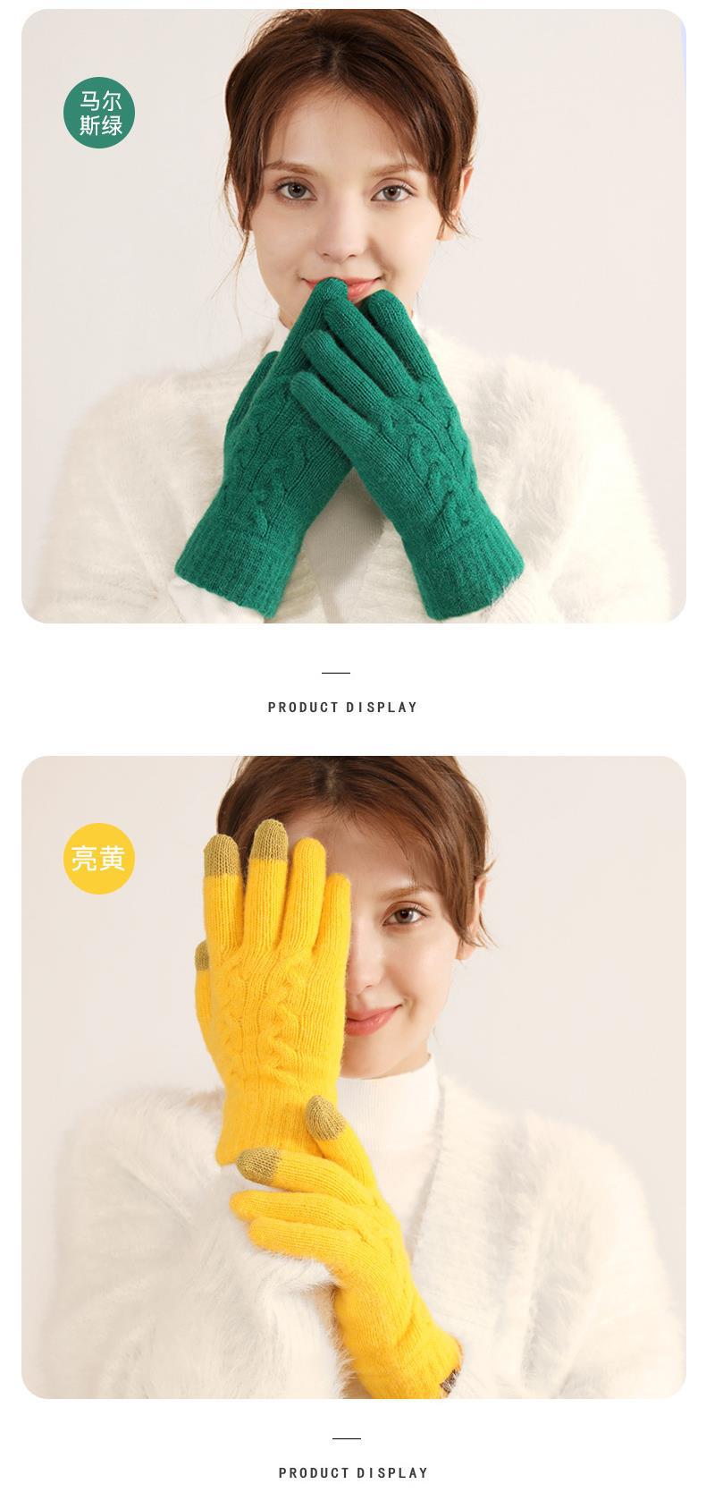 겨울 여자의 더블 레이어 따뜻한 터치 스크린 니트 장갑 양모 감기 방지 솔리드 컬러 기모 두꺼운 남자 야외 승마