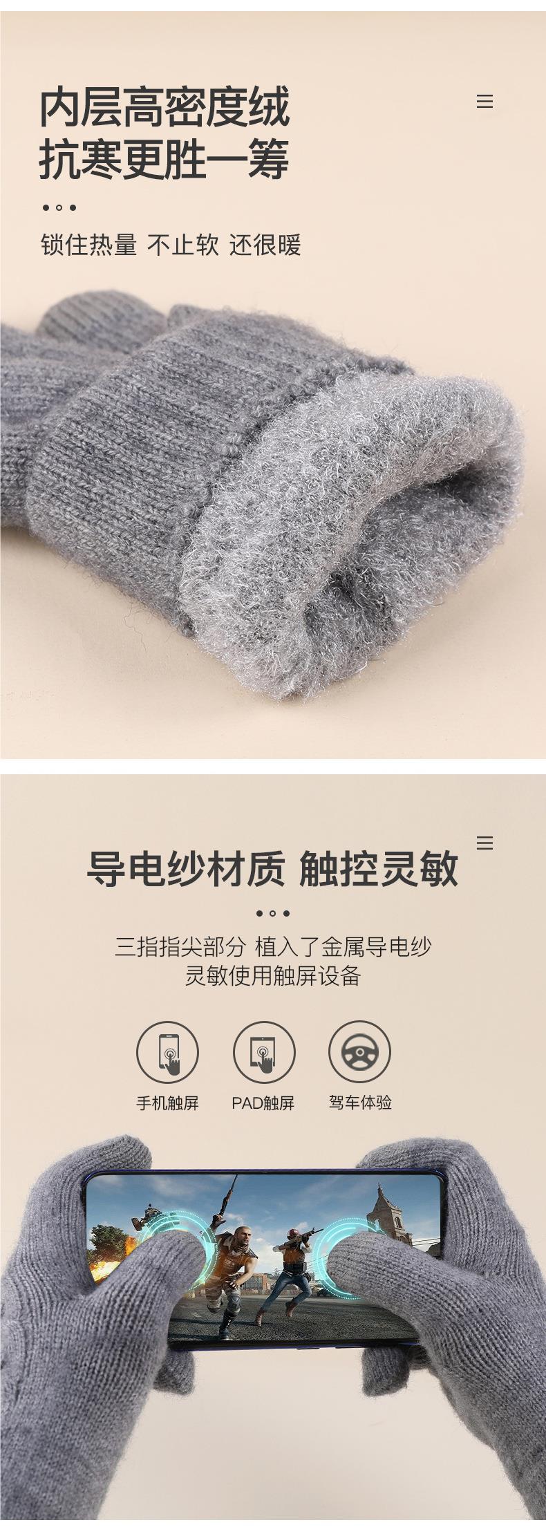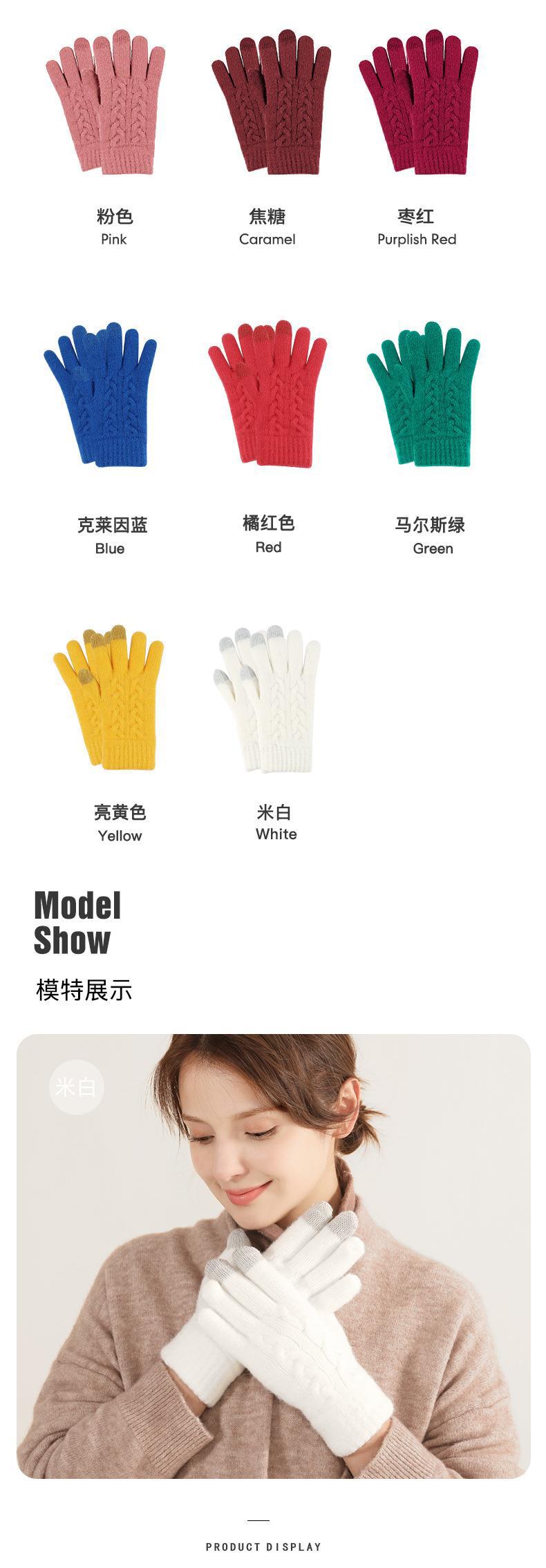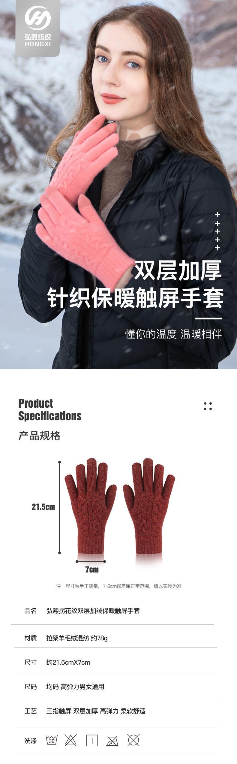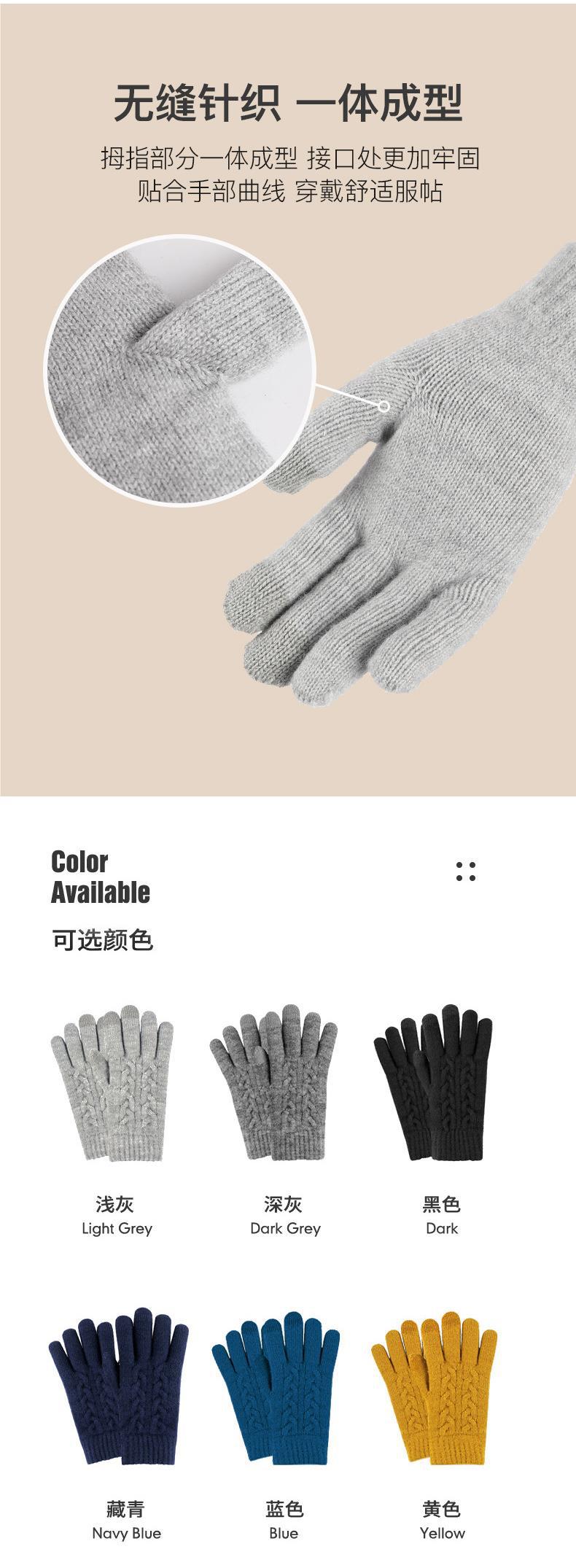 겨울 여자의 더블 레이어 따뜻한 터치 스크린 니트 장갑 양모 감기 방지 솔리드 컬러 기모 두꺼운 남자 야외 승마